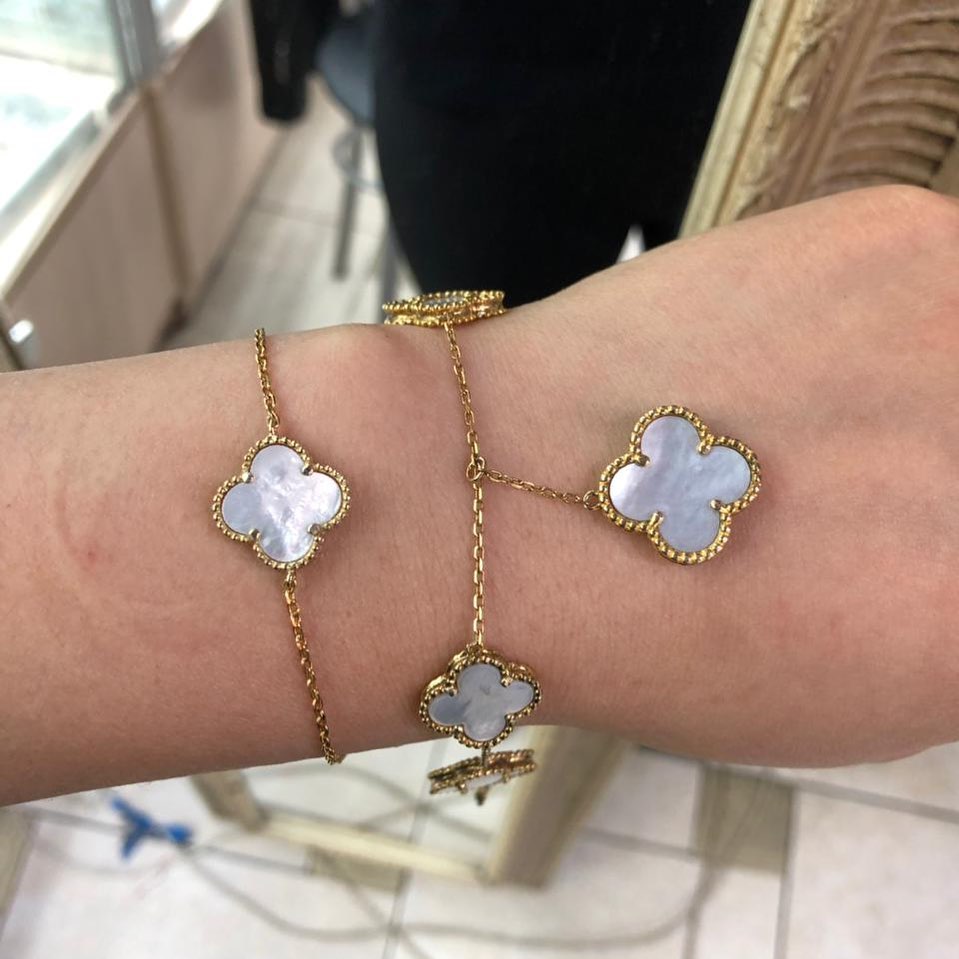 Этот изысканный браслет LUX-45810, выполненный в стиле "клевер", станет утонченным дополнением к вашему образу. Тонкие золотистые цепочки изящно обвивают запястье, украшенное подвесками в виде четырехлистника с перламутровой вставкой. Дизайн браслета призван добавить нотку роскоши и элегантности любому наряду, подчеркивая утонченный вкус его обладательницы.