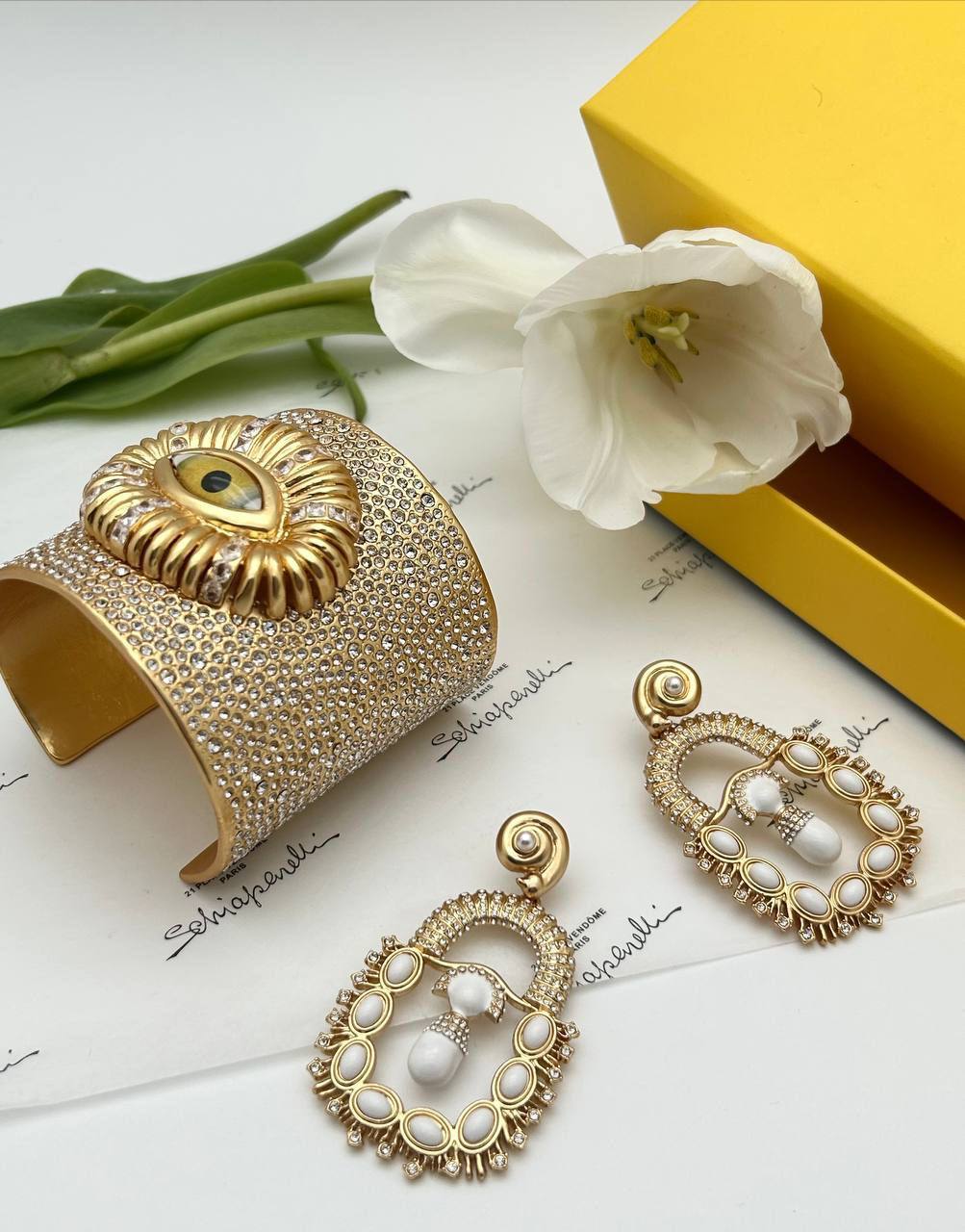 Браслет Schiaparelli (LUX-116593) представляет собой роскошное украшение в золотистом цвете. Дизайн браслета сочетает в себе элегантность и экстравагантность, что делает его идеальным аксессуаром для создания яркого образа. Он предназначен для придания акцента любому наряду.