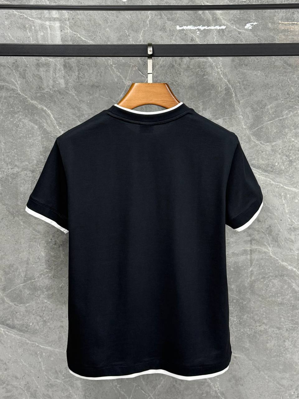 Футболка Brioni LUX-118125 — это стильный предмет гардероба, выполненный в классическом стиле. Модель выполнена в черном цвете с белыми контрастными элементами на манжетах и воротнике. Эта футболка может стать отличным выбором для повседневного гардероба или для создания элегантных образов.