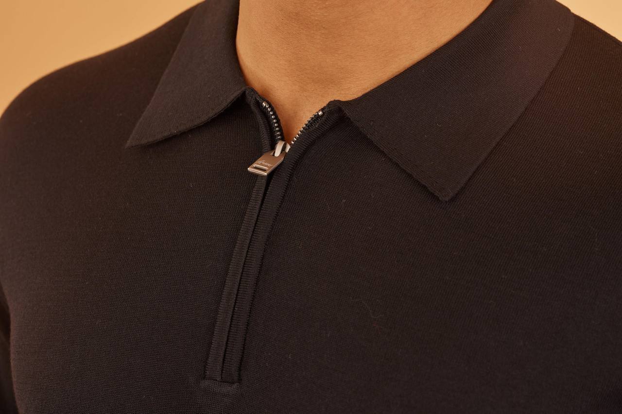 Поло Brioni LUX-115929 - это стильная рубашка-поло, выполненная в классическом стиле. Модель имеет короткие рукава и воротник, а также молнию на груди. Черный цвет делает изделие универсальным и подходящим для различных ситуаций.