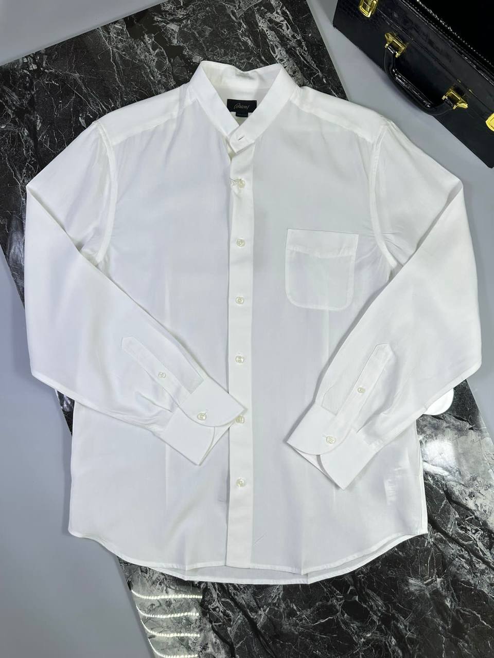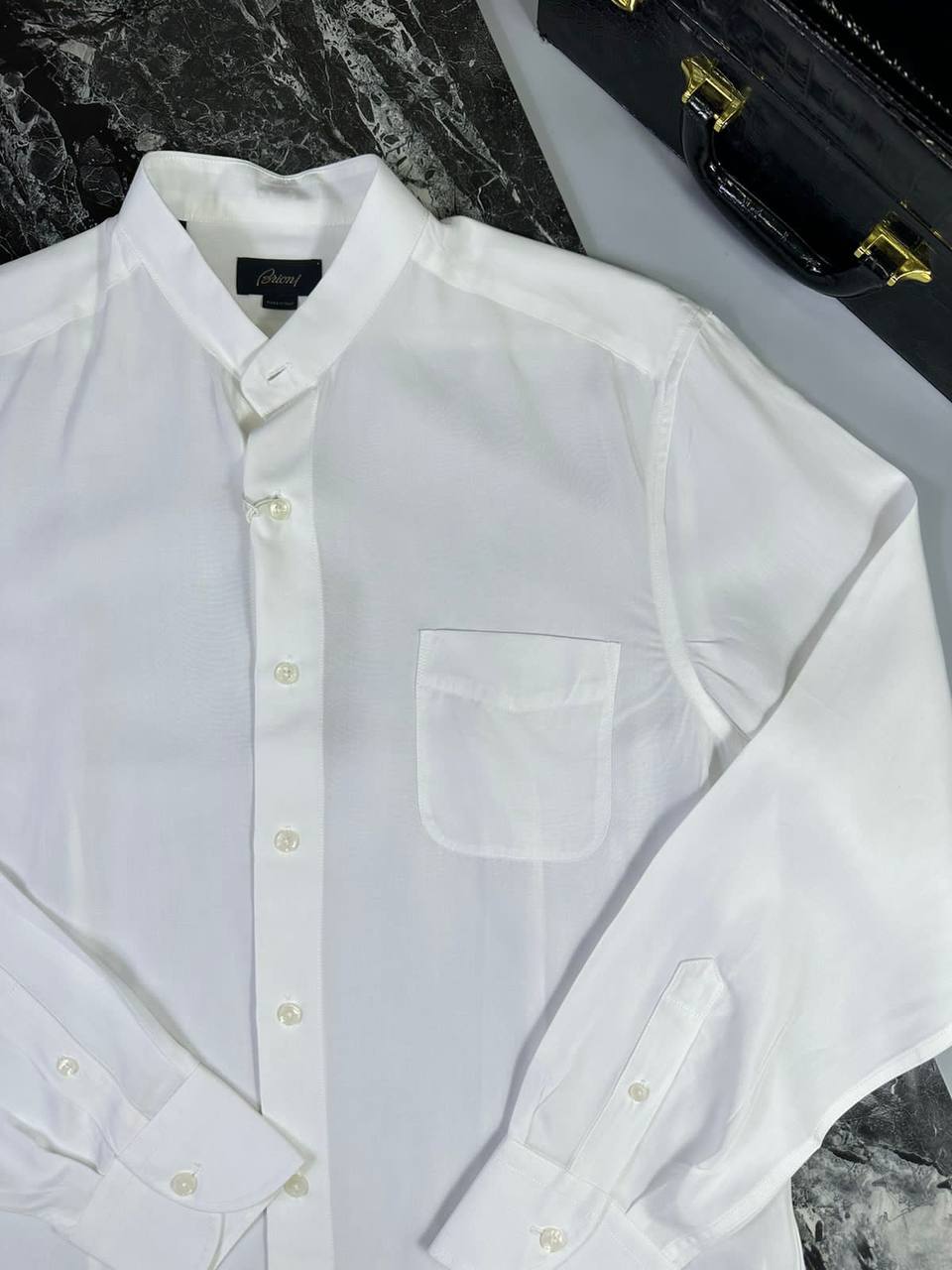 Рубашка Brioni LUX-96490 – это элегантная белая рубашка премиум-класса с воротником-стойкой, предназначенная для создания стильных образов. Она выполнена в классическом стиле, подчеркивающем утонченный вкус своего обладателя. Идеально подходит для деловых встреч, торжественных мероприятий или повседневной носки.