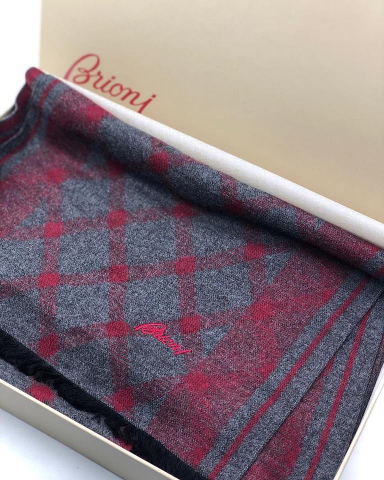 Шарф Brioni АКС-1291 — это элегантный аксессуар, выполненный в классическом стиле. Шарф украшен клетчатым узором в серо-красных тонах и фирменной вышивкой бренда. Он станет стильным дополнением к вашему повседневному или деловому образу, придавая ему нотку изысканности.
