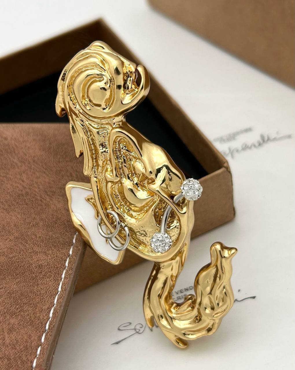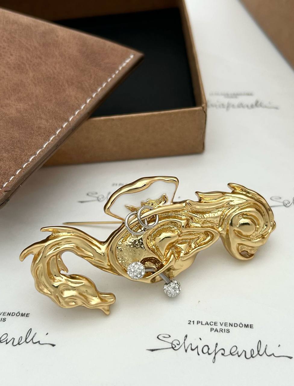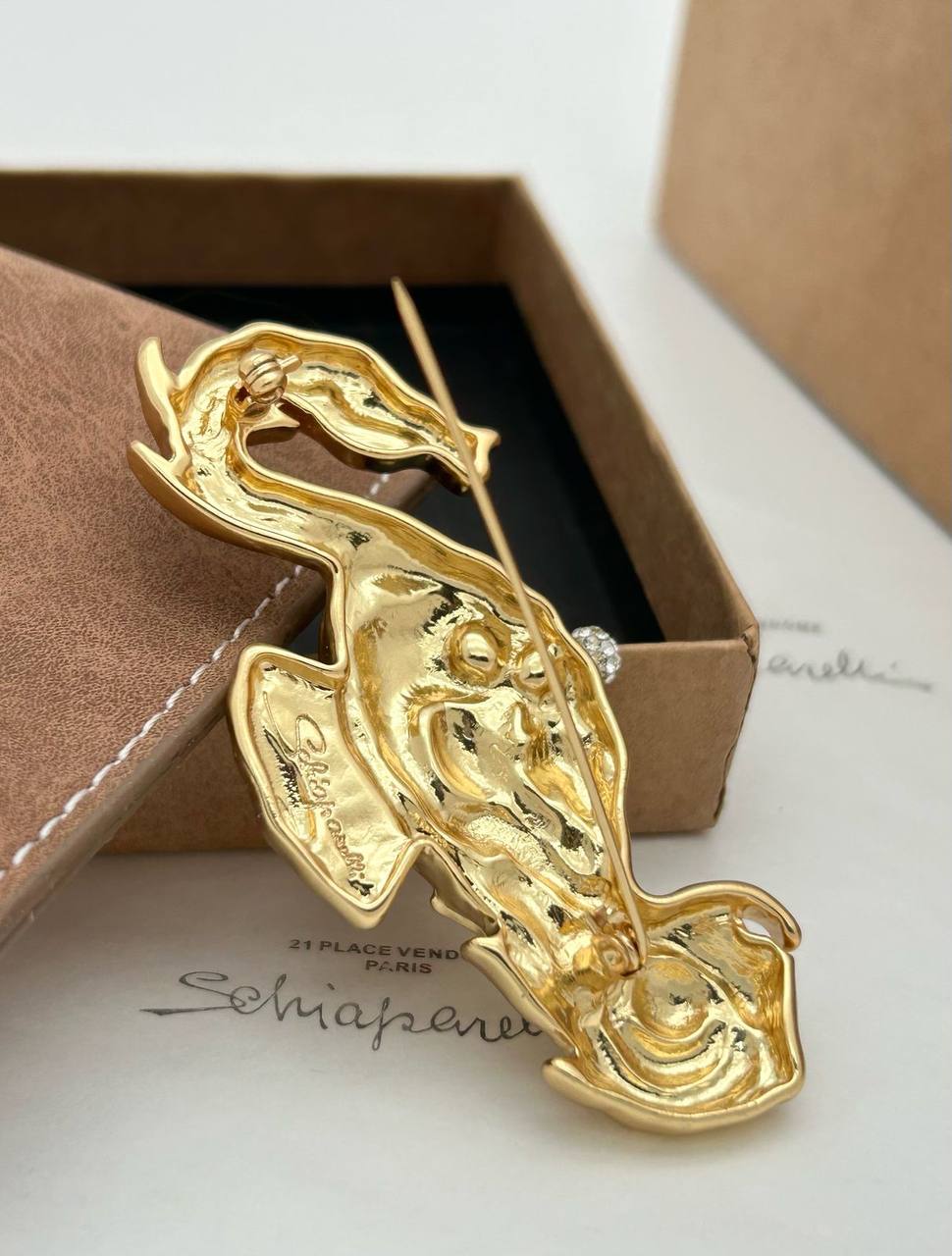 Брошь Schiaparelli LUX-116670 – это роскошное украшение, которое привлекает внимание своим уникальным дизайном. Брошь выполнена в золотом цвете с замысловатой формой, напоминающей мифическое существо. Она станет ярким акцентом в вашем образе.