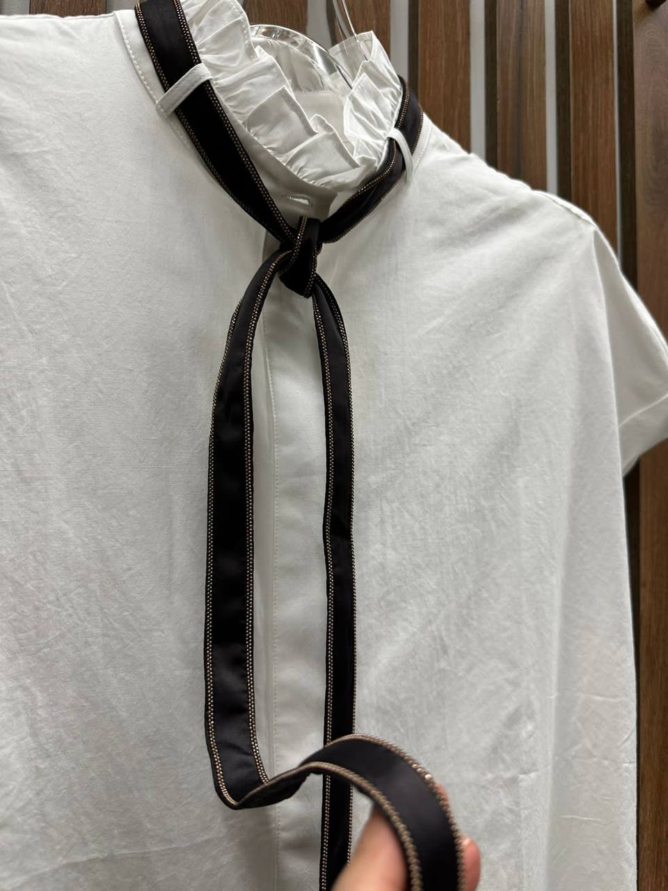 Блузка Brunello Cucinelli LUX-102338 представляет собой элегантную модель, выполненную в классическом стиле. Белый цвет блузки гармонично сочетается с черным бантом, создавая утонченный контраст. Идеально подходит как для повседневной носки, так и для создания деловых образов.