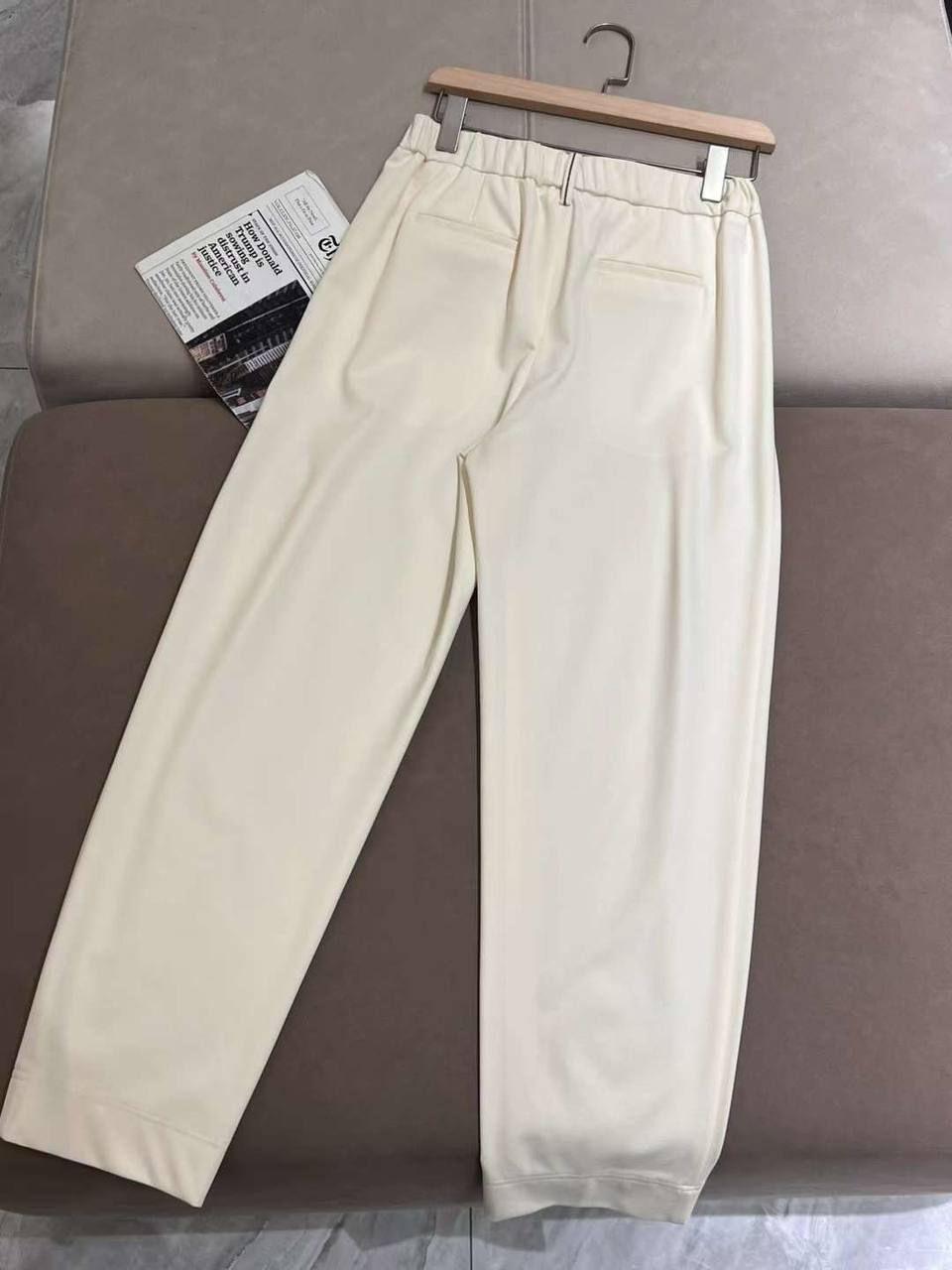 Брюки Brunello Cucinelli LUX-103918 представляют собой элегантные брюки классического кроя. Они выполнены в приятном кремовом цвете, с гладкой текстурой, что делает их подходящими для различных ситуаций — от повседневных образов до более формальных.