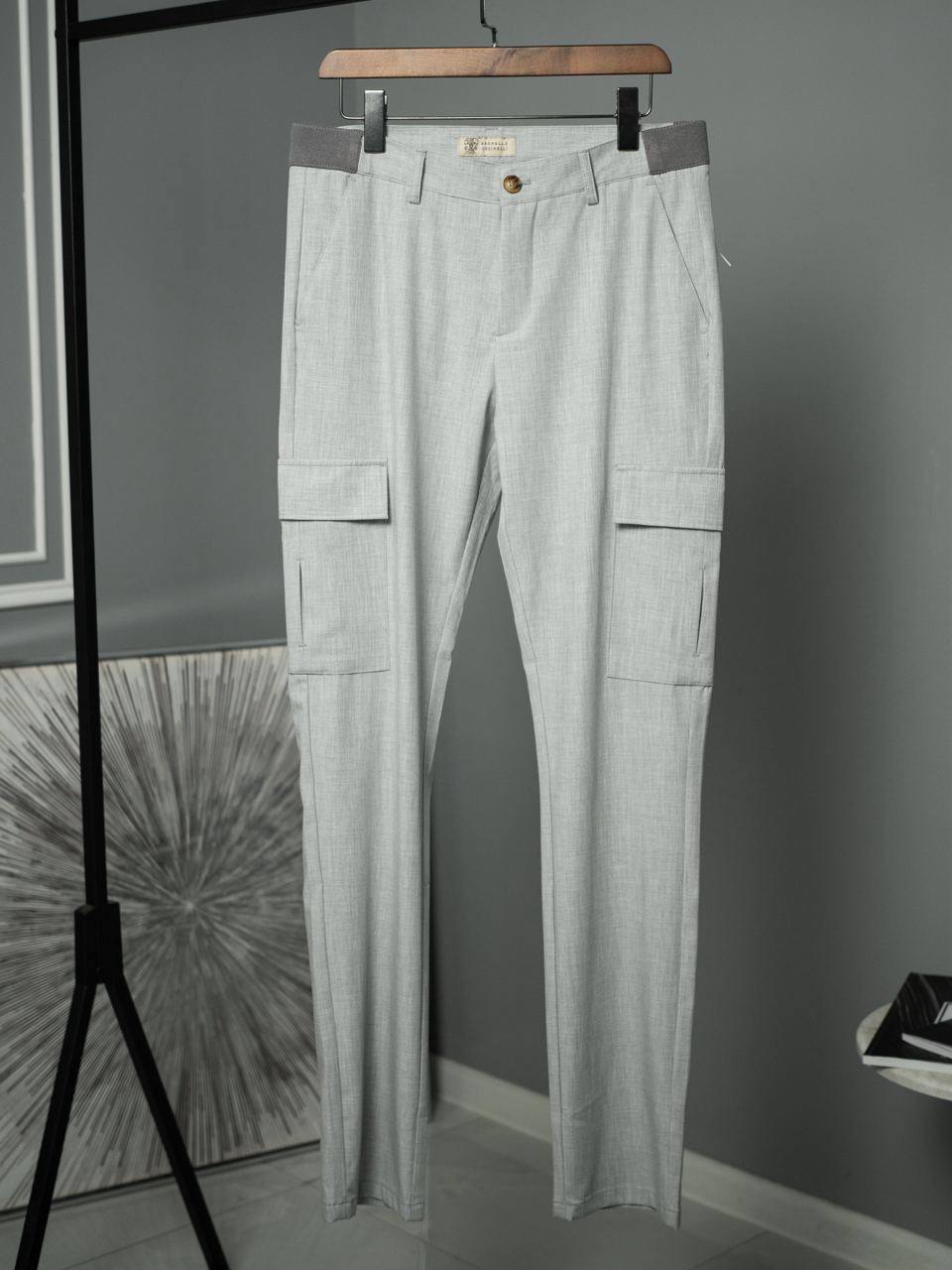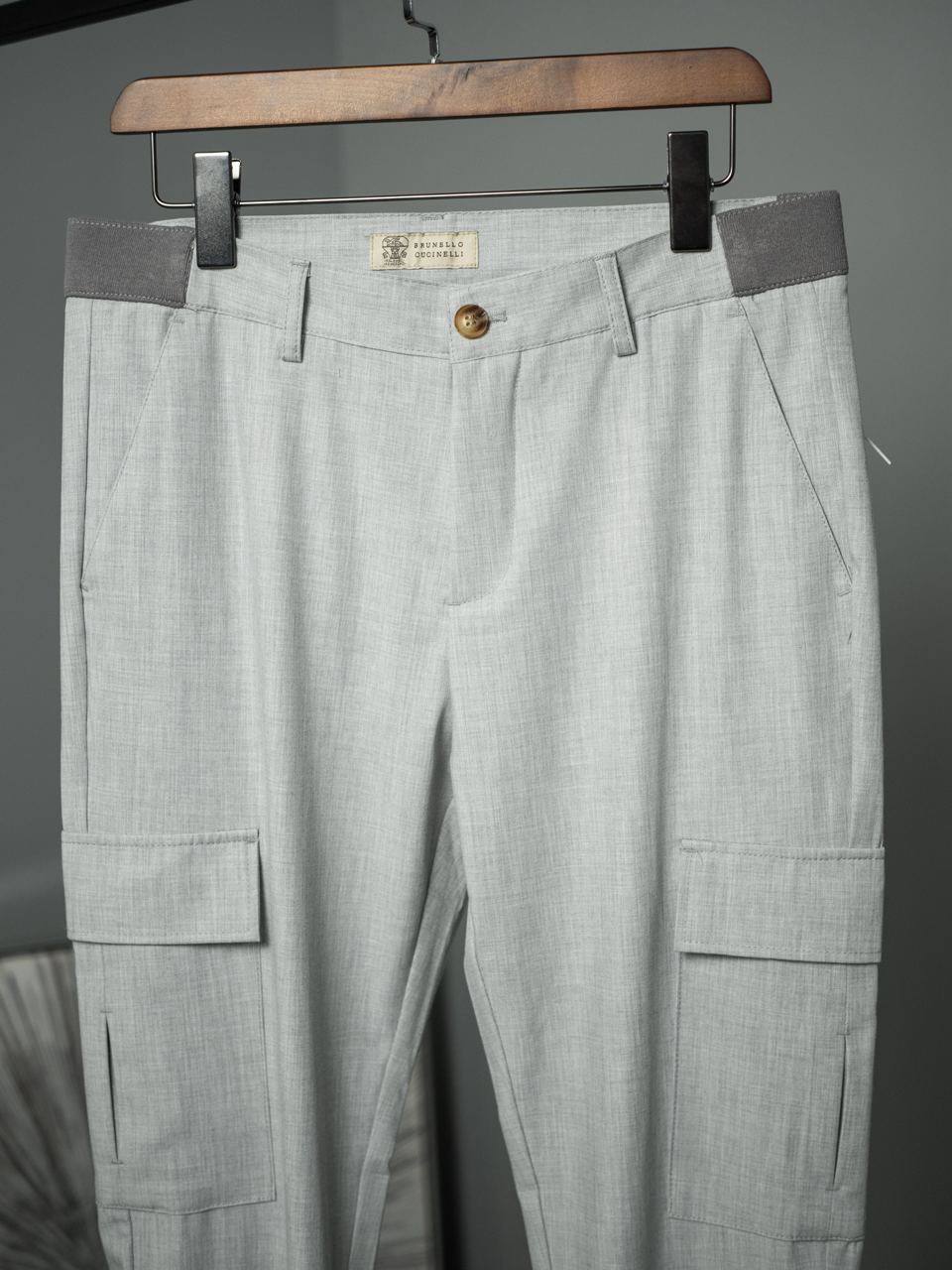 Брюки Brunello Cucinelli LUX-103946 - это стильные брюки карго в классическом стиле. Светло-серый цвет, делает их универсальными для создания разнообразных образов. Брюки подходят для повседневной носки, а также для более формальных мероприятий.