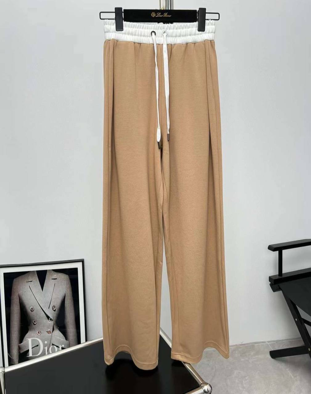 Брюки Brunello Cucinelli LUX-88877 — это стильные спортивные брюки. Брюки выполнены в бежевом цвете с белой резинкой на поясе и белыми шнурками. Идеальны для создания комфортного образа в стиле casual.