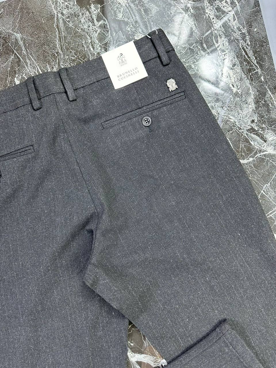 Брюки Brunello Cucinelli LUX-97356 представляют собой элегантную модель серого цвета с классическим дизайном. Ткань имеет тонкую полосатую текстуру, что добавляет изделию изысканности. Эти брюки идеально подойдут для создания как формальных, так и повседневных образов.