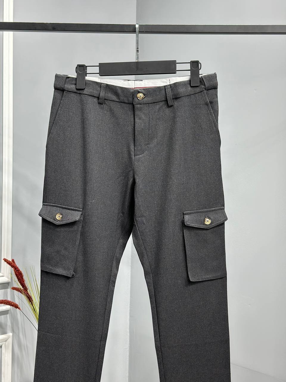 Брюки-карго Brunello Cucinelli LUX-94928 - это стильные брюки-карго. Они выполнены в классическом сером цвете, который делает их универсальными и подходящими для разных образов. Текстура материала, вероятно, обеспечивает комфорт и элегантный внешний вид.