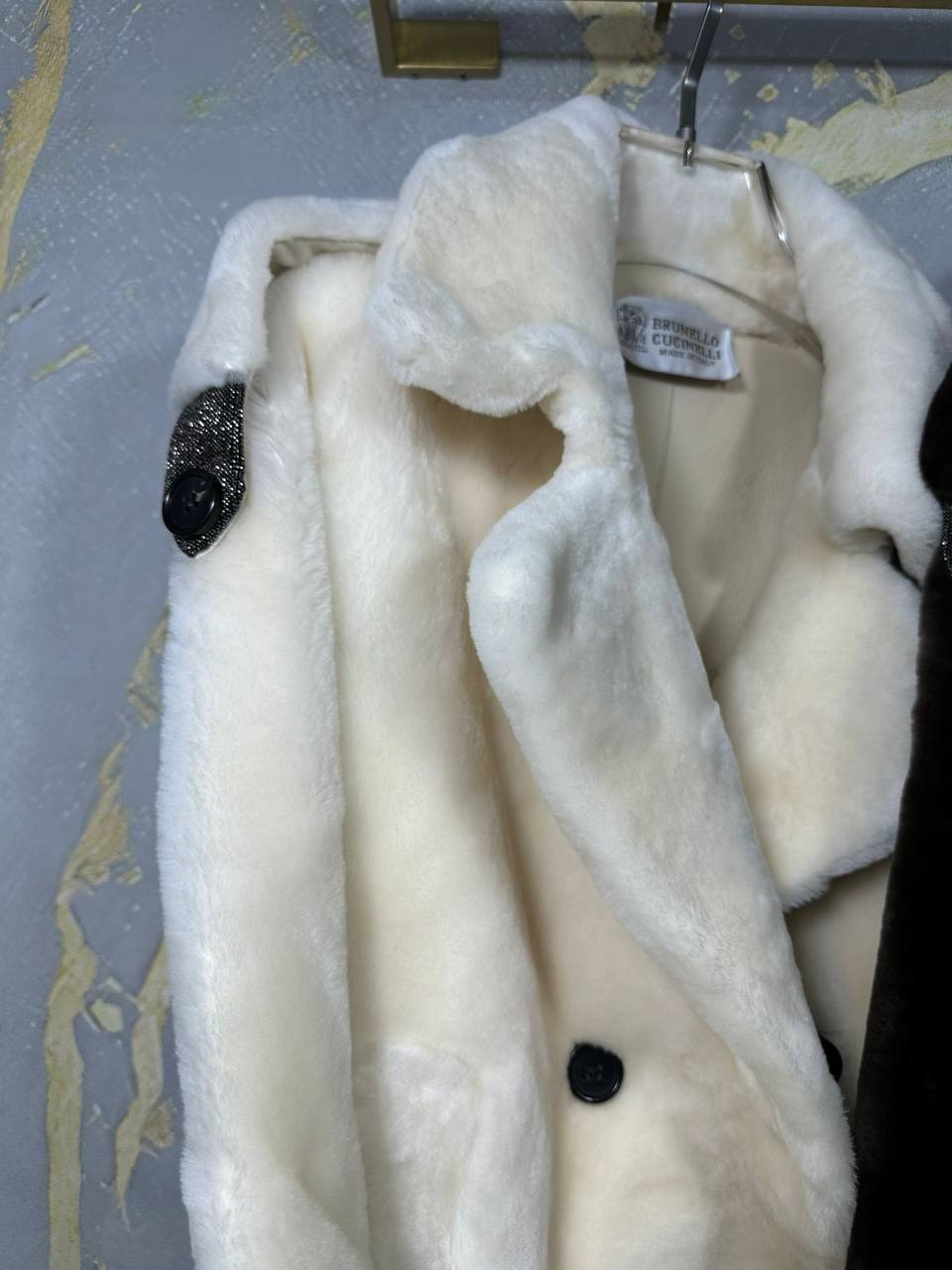 Дубленка Brunello Cucinelli LUX-112753 – это воплощение роскоши и стиля. Дубленка, представленная на фото, выполнена в насыщенном темно-коричневом цвете, имеет мягкую текстуру и элегантный силуэт. Она идеально подходит для создания изысканных зимних образов.