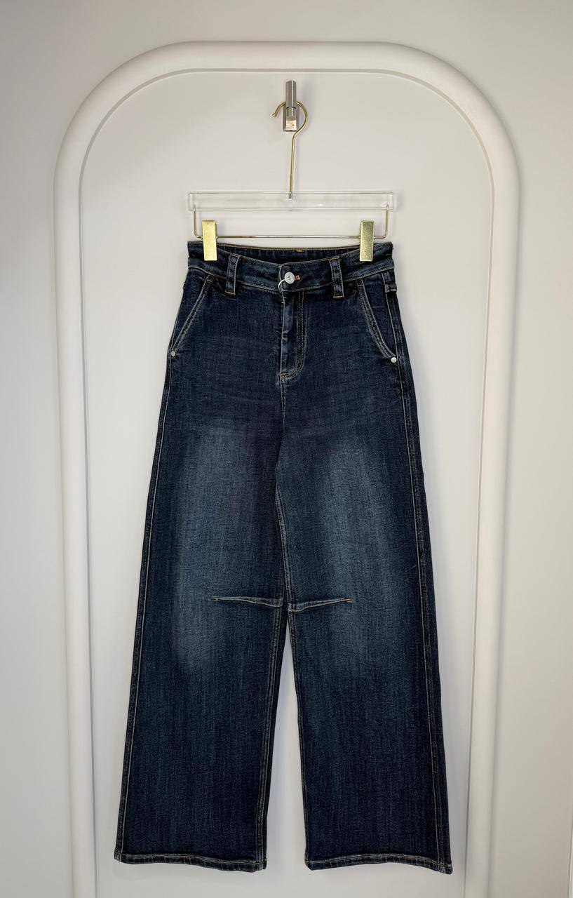 Джинсы Brunello Cucinelli, артикул LUX-119105, представляют собой современный вариант повседневной классики. Широкие джинсы темно-синего цвета с потертостями создают эффект изношенности. Эта модель подойдет для создания различных образов, от кэжуал до более формальных.