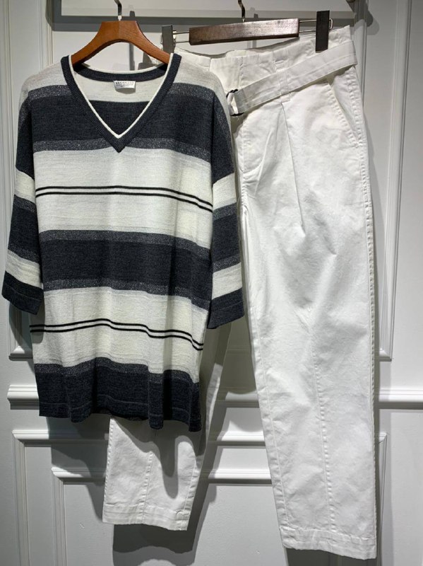 Эта футболка Brunello Cucinelli LUX-51119 сочетает в себе элегантность и комфорт, предлагая современный взгляд на классический стиль. Оригинальный дизайн в горизонтальную полоску, выполненный в приглушенных тонах, делает эту модель универсальной для создания как повседневных, так и более изысканных образов.