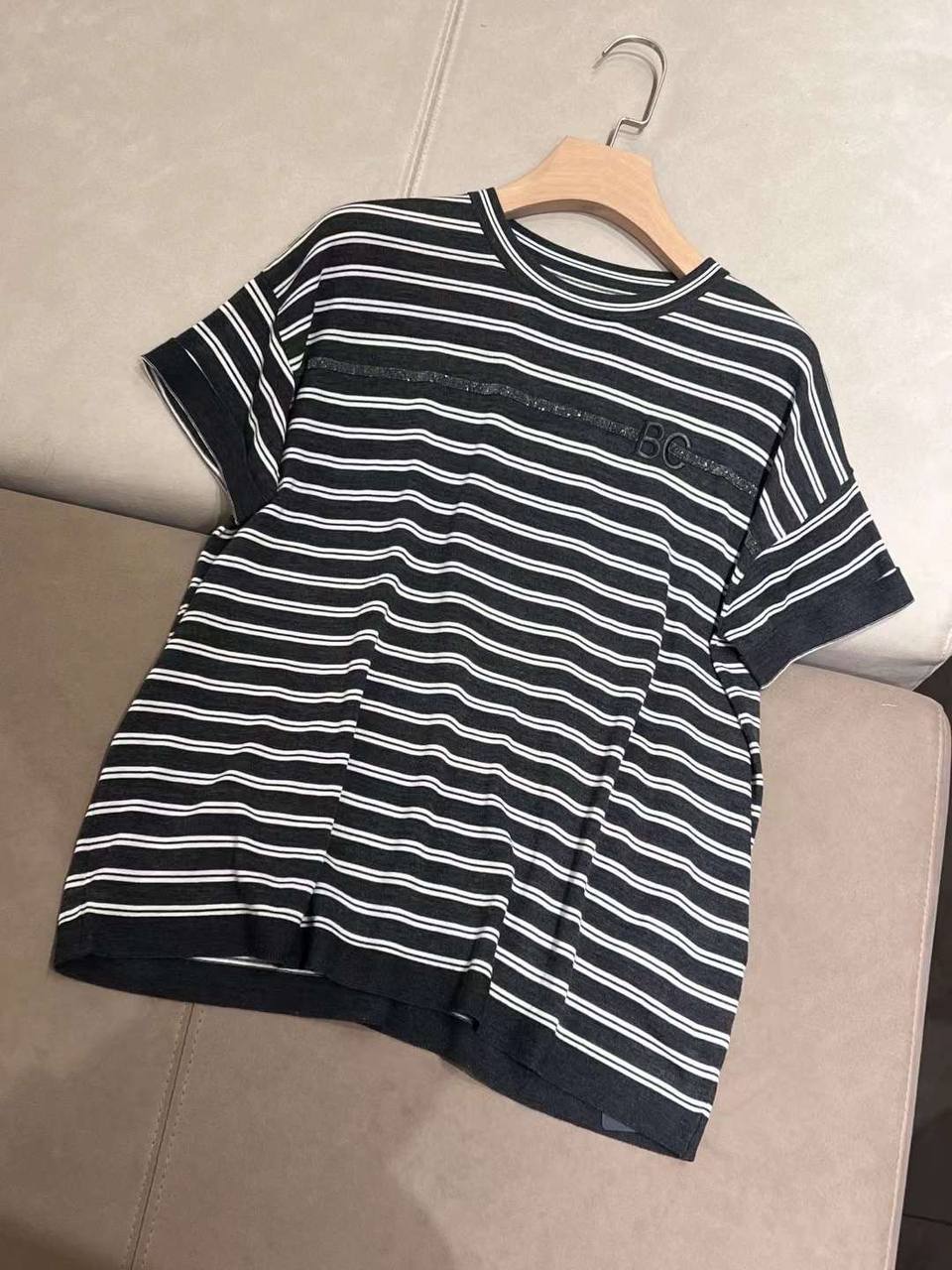 Футболка Brunello Cucinelli LUX-103994 – это стильная футболка в полоску, выполненная в классическом стиле. Она выполнена в черно-белой цветовой гамме, что делает ее универсальной для любого гардероба. Идеально подходит для повседневной носки, сочетая в себе комфорт и элегантность.