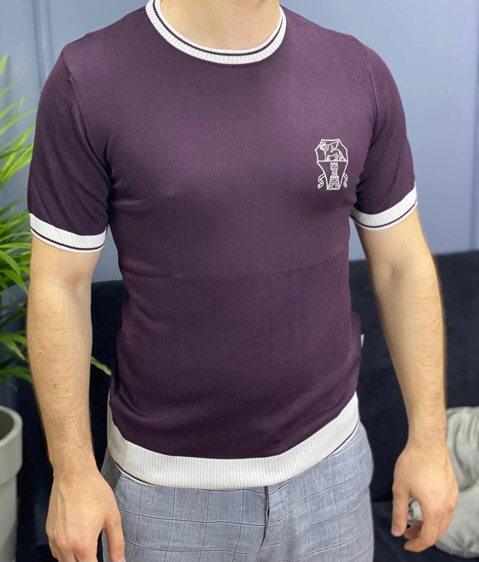 Brunello Cucinelli Футболка LUX-51880 – это стильная и элегантная мужская футболка, выполненная в глубоком сливовом цвете. Модель отличается лаконичным дизайном с контрастными белыми манжетами и воротником, а также фирменной вышивкой на груди, подчеркивающей ее премиальность. Она идеально подходит для создания утонченных повседневных и спортивных образов.