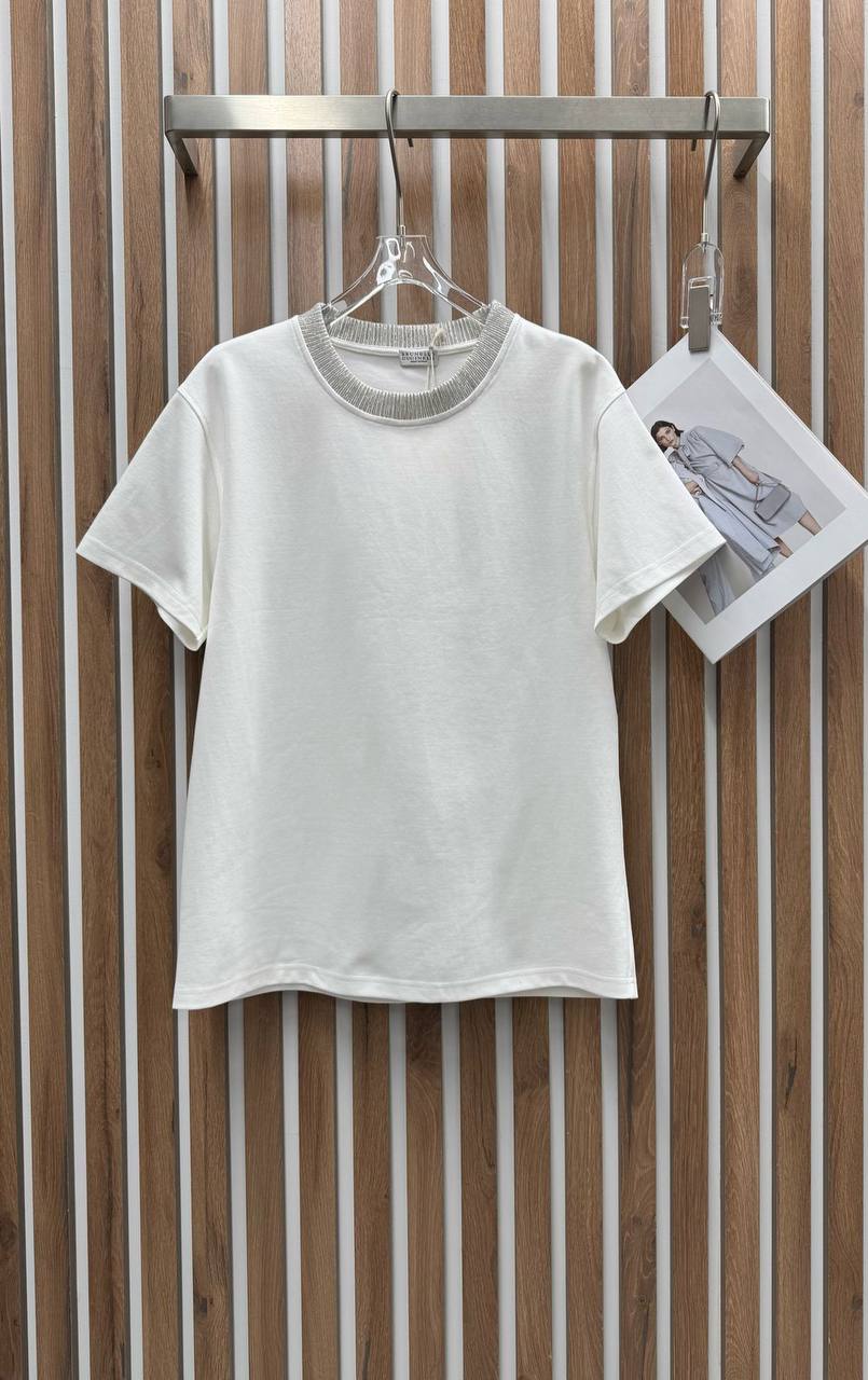 Футболка Brunello Cucinelli LUX-115972 - это изысканный предмет гардероба, который сочетает в себе элегантность и повседневный стиль. Она выполнена в классическом белом цвете с круглым вырезом, окантованным декоративной отделкой. Эта футболка идеально подходит для создания стильных образов на каждый день.