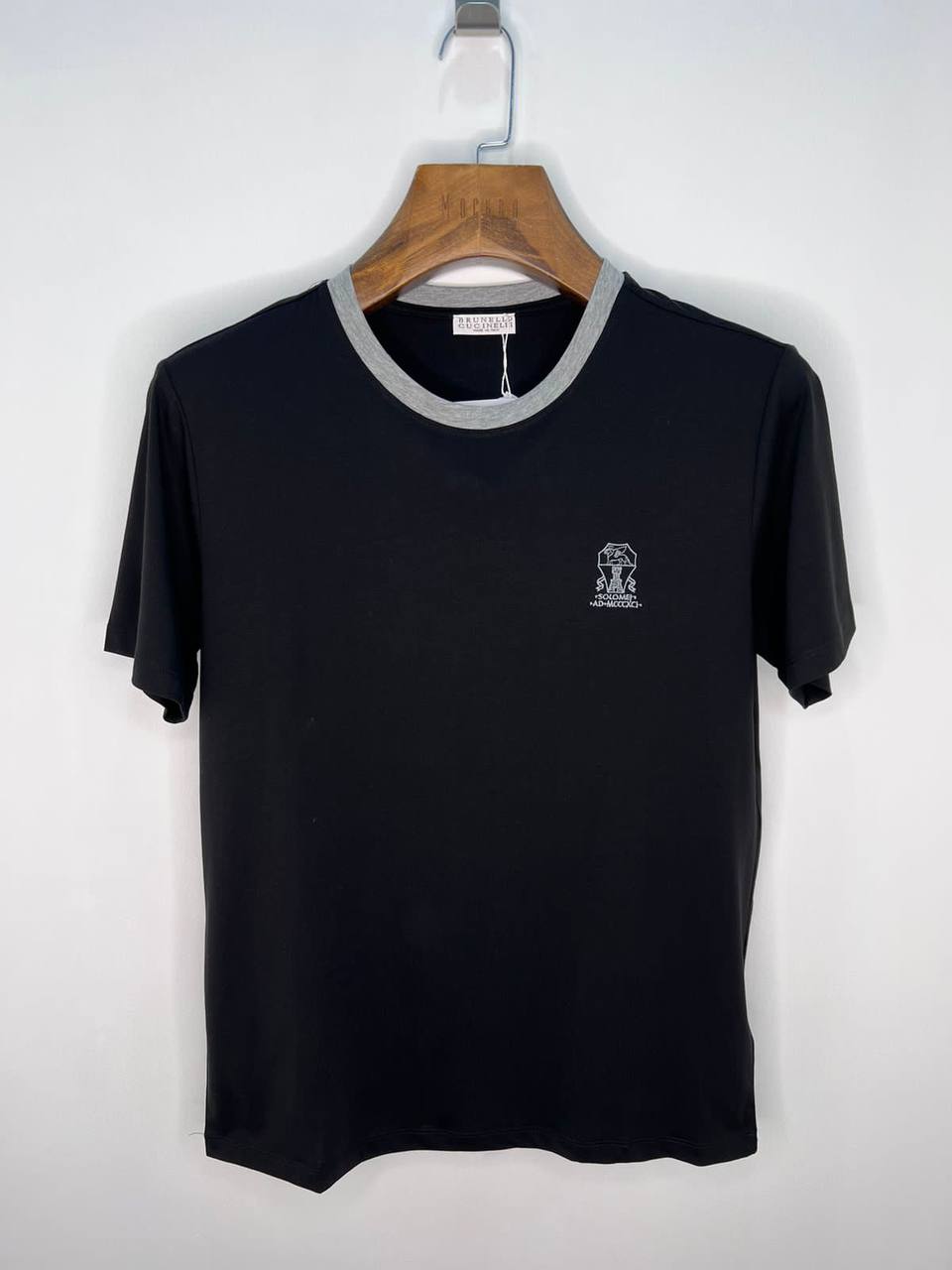 Футболка Brunello Cucinelli LUX-71917 — это стильная футболка черного цвета, с серым воротником. Эта модель сочетает в себе элегантность и комфорт, идеально подходящая для повседневного использования.