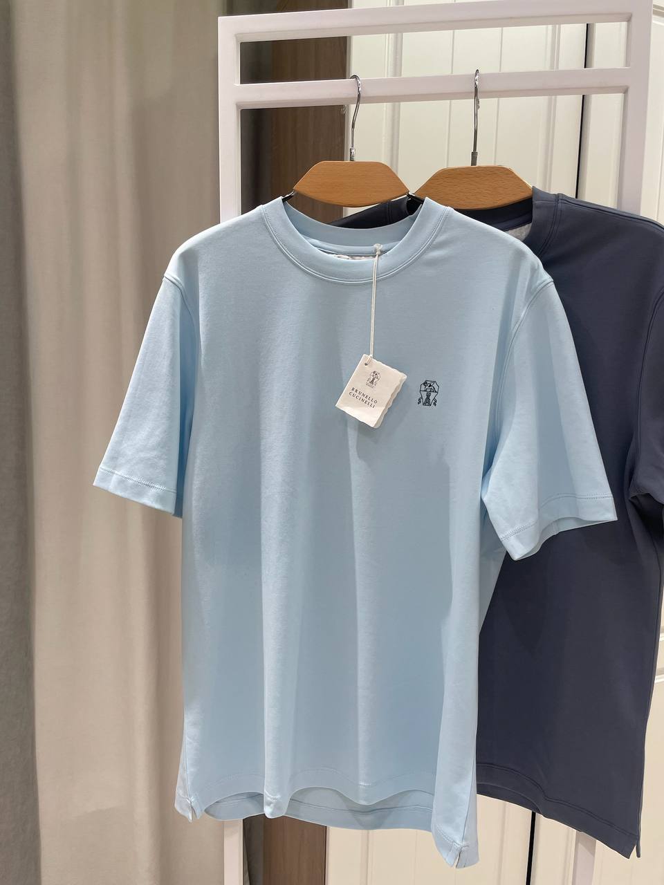 Футболка Brunello Cucinelli LUX-119622 - это стильная базовая вещь в гардеробе. Футболка выполнена в небесно-голубом цвете с минималистичным дизайном. Отличный выбор для создания повседневных и более формальных образов.