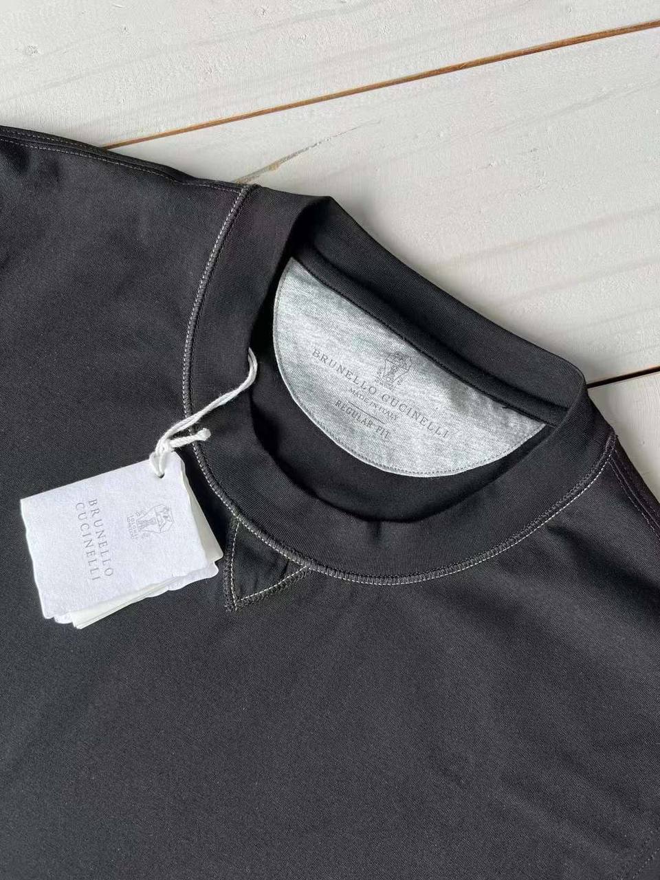 Футболка мужская Brunello Cucinelli LUX-115715 — это воплощение минимализма и элегантности. Классическая футболка черного цвета с круглым вырезом и короткими рукавами. Декорирована контрастной строчкой и маленькой эмблемой.