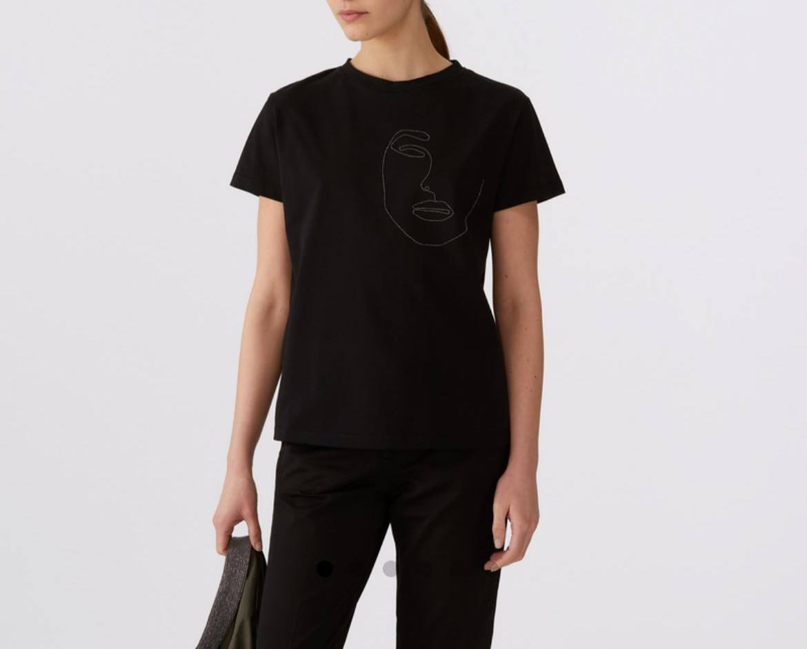 Футболка женская Brunello Cucinelli LUX-66176 – это стильная и минималистичная модель, идеально подходящая для создания современных образов. Однотонная черная футболка дополнена изящным принтом в виде контурного изображения лица, что придает ей уникальность и элегантность. Она станет отличной базой для множества комплектов, сочетая в себе комфорт и изысканный стиль бренда.