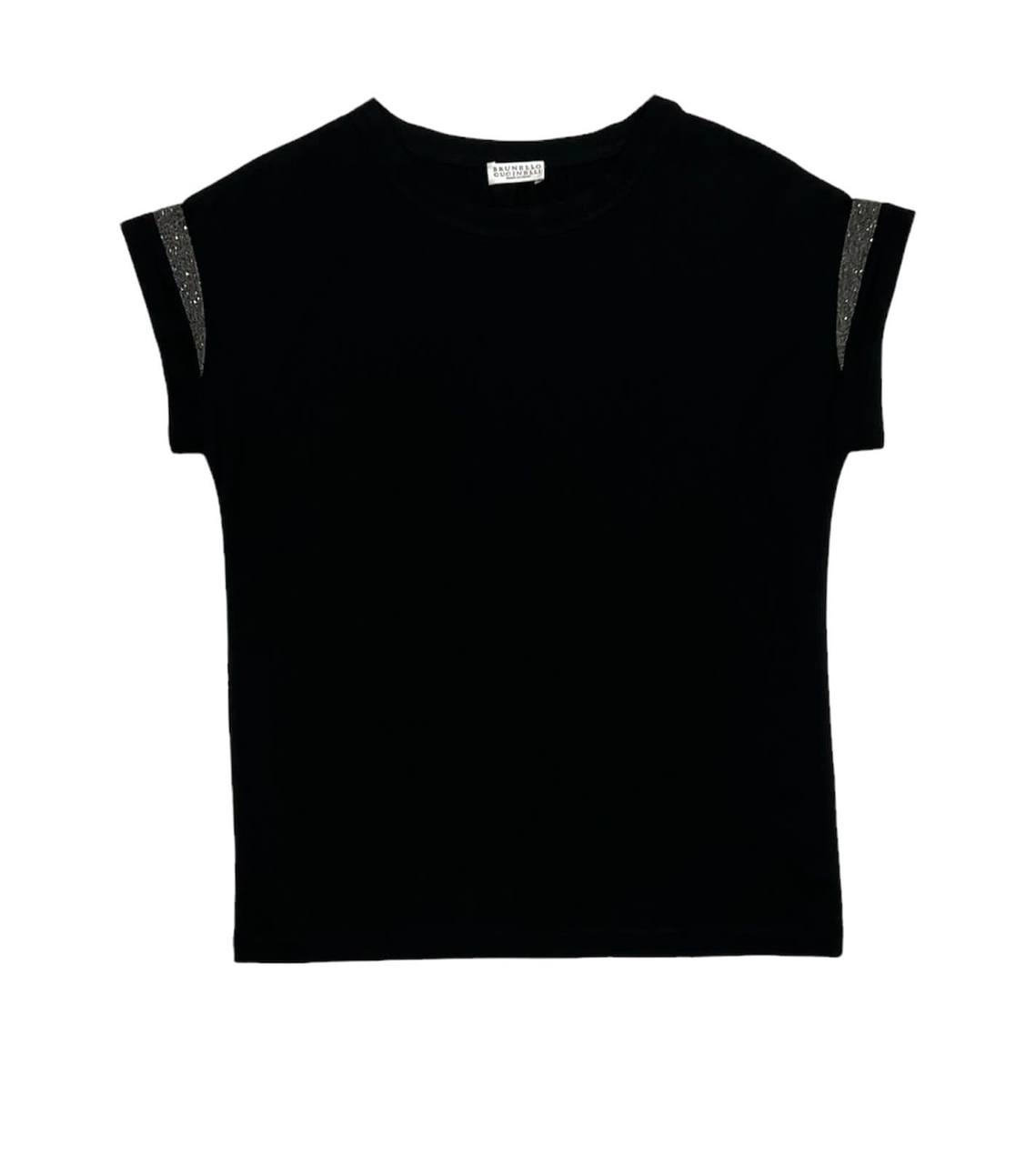 Женская футболка Brunello Cucinelli LUX-67000 – это элегантная модель, сочетающая классический крой и актуальные детали. Черный цвет и лаконичный силуэт делают ее универсальной, а деликатное украшение на рукавах в виде мерцающих страз добавляет изысканности. Футболка идеально подойдет для создания как повседневных, так и вечерних образов, подчеркивая ваш безупречный вкус.
