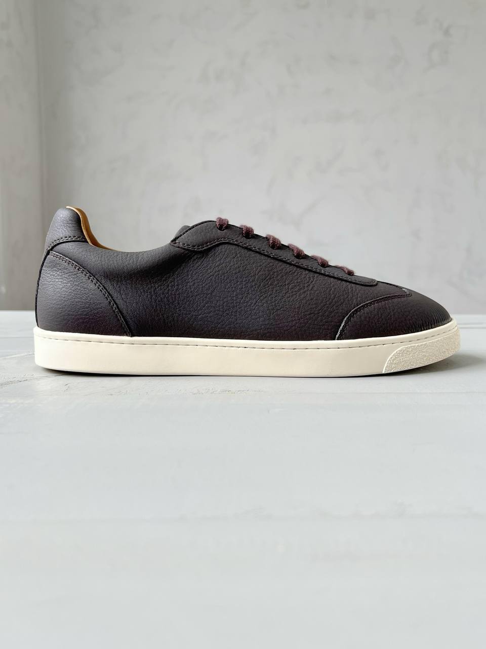 Кеды Brunello Cucinelli LUX-107682 — это элегантная обувь в стиле casual. Кеды выполнены в коричневом цвете, с белой подошвой и коричневыми шнурками. Идеально подойдут для создания стильных повседневных образов.