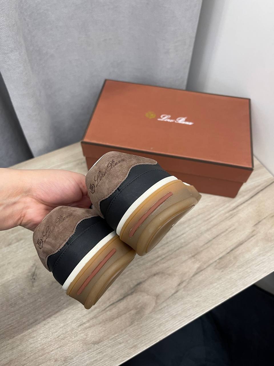 Мужские кеды Loro Piana LUX-101660 — это стильная обувь для повседневной носки, выполненная в элегантном дизайне. Чёрный цвет кед в сочетании с коричневыми и белыми элементами создает современный и универсальный образ. Подошва обеспечивает комфорт при ходьбе, а материалы гарантируют долговечность.