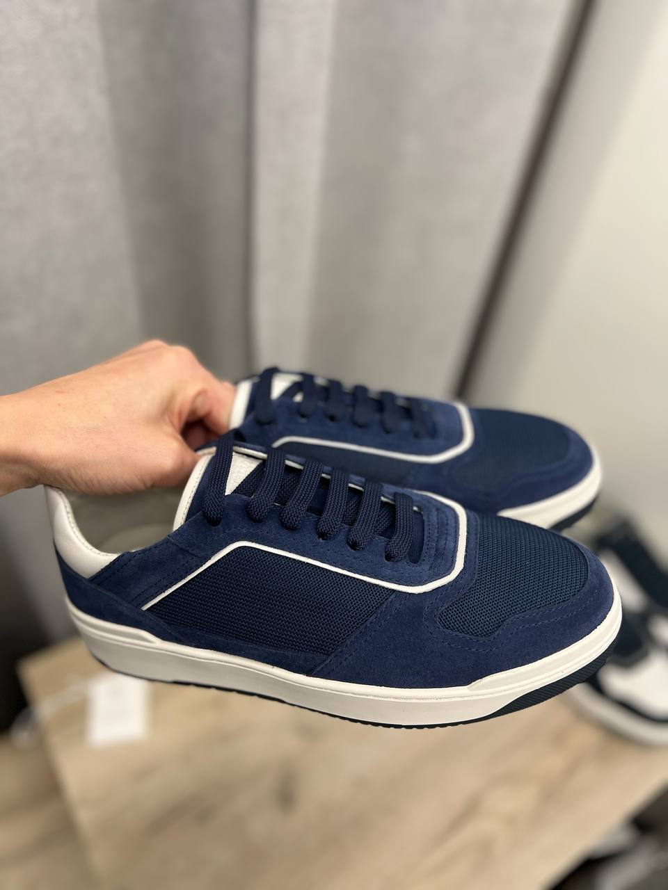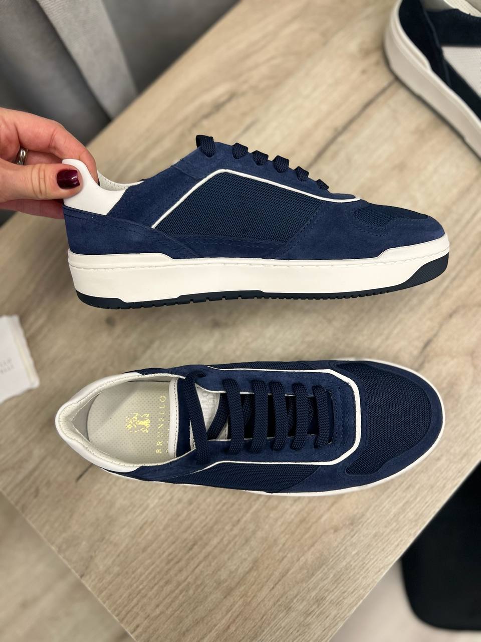Кеды мужские Brunello Cucinelli LUX-102218 — это элегантные кеды в синем цвете, сочетающие в себе спортивный стиль и изысканность. Модель выполнена в основном в синем цвете с белыми элементами. Текстура кед представляет собой комбинацию материалов.