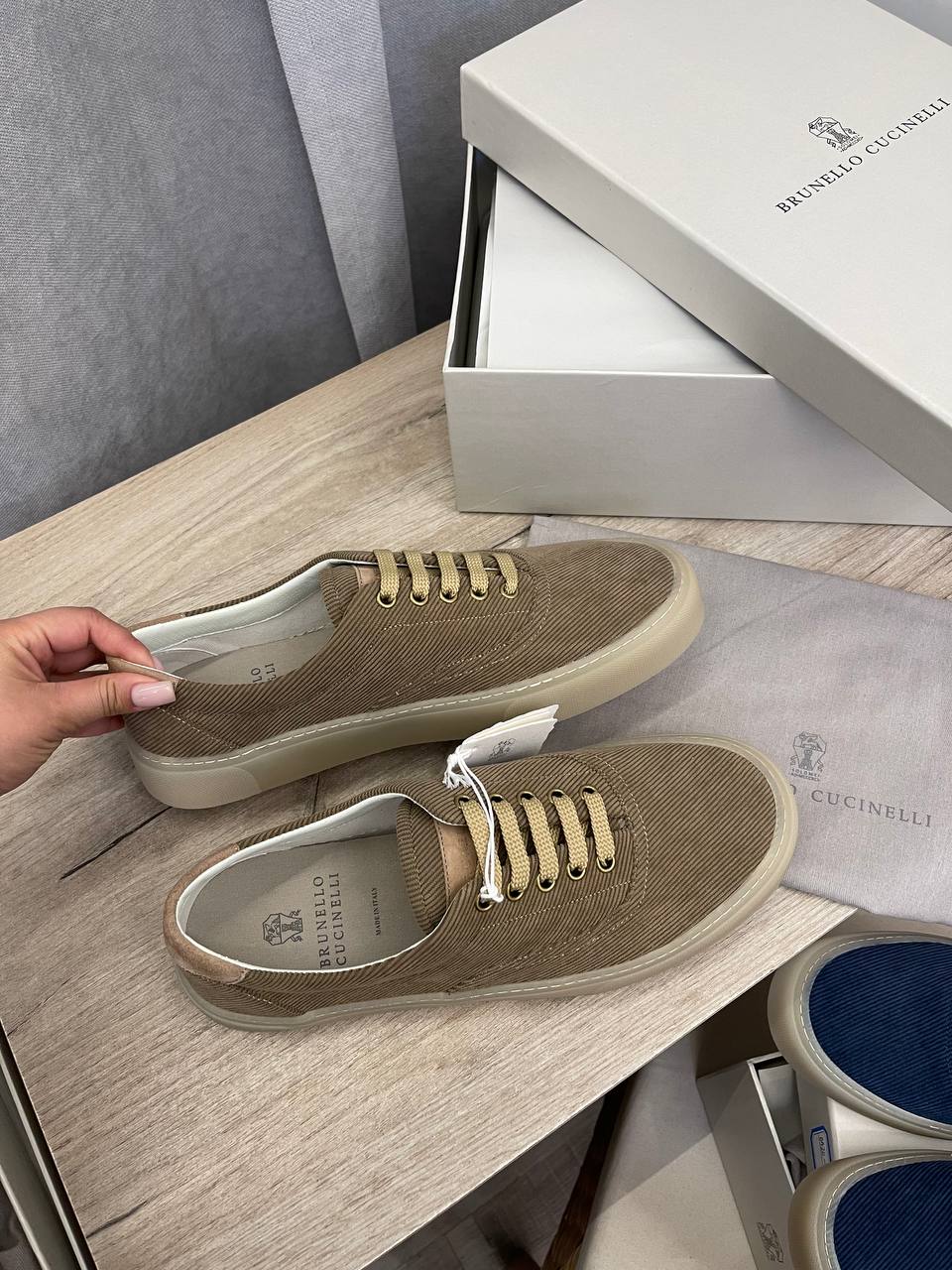 Кеды мужские Brunello Cucinelli LUX-107108 – это стильные мужские кеды, выполненные в повседневном стиле. Кеды светло-коричневого цвета, текстура материала ребристая, а подошва выполнена в тон основного материала. Идеальный выбор для создания повседневных образов, сочетающихся с различными стилями одежды.