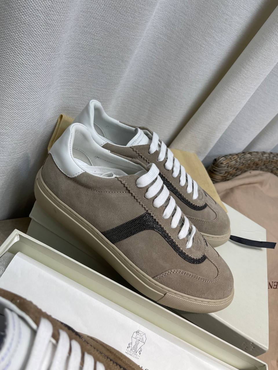 Brunello Cucinelli представляет стильные женские кеды. Эта модель сочетает в себе элегантность и комфорт, идеально подходя для создания модных образов на каждый день.