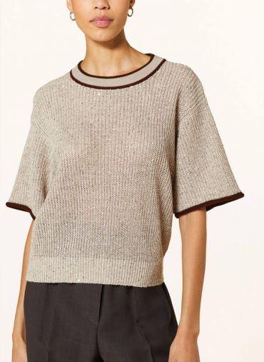 Кофта Brunello Cucinelli LUX-106823 — это воплощение утонченной элегантности. Кофта выполнена в нейтральном бежевом цвете, придающем ей универсальность. Модель имеет короткий рукав, круглый вырез горловины и мягкую текстуру ткани.