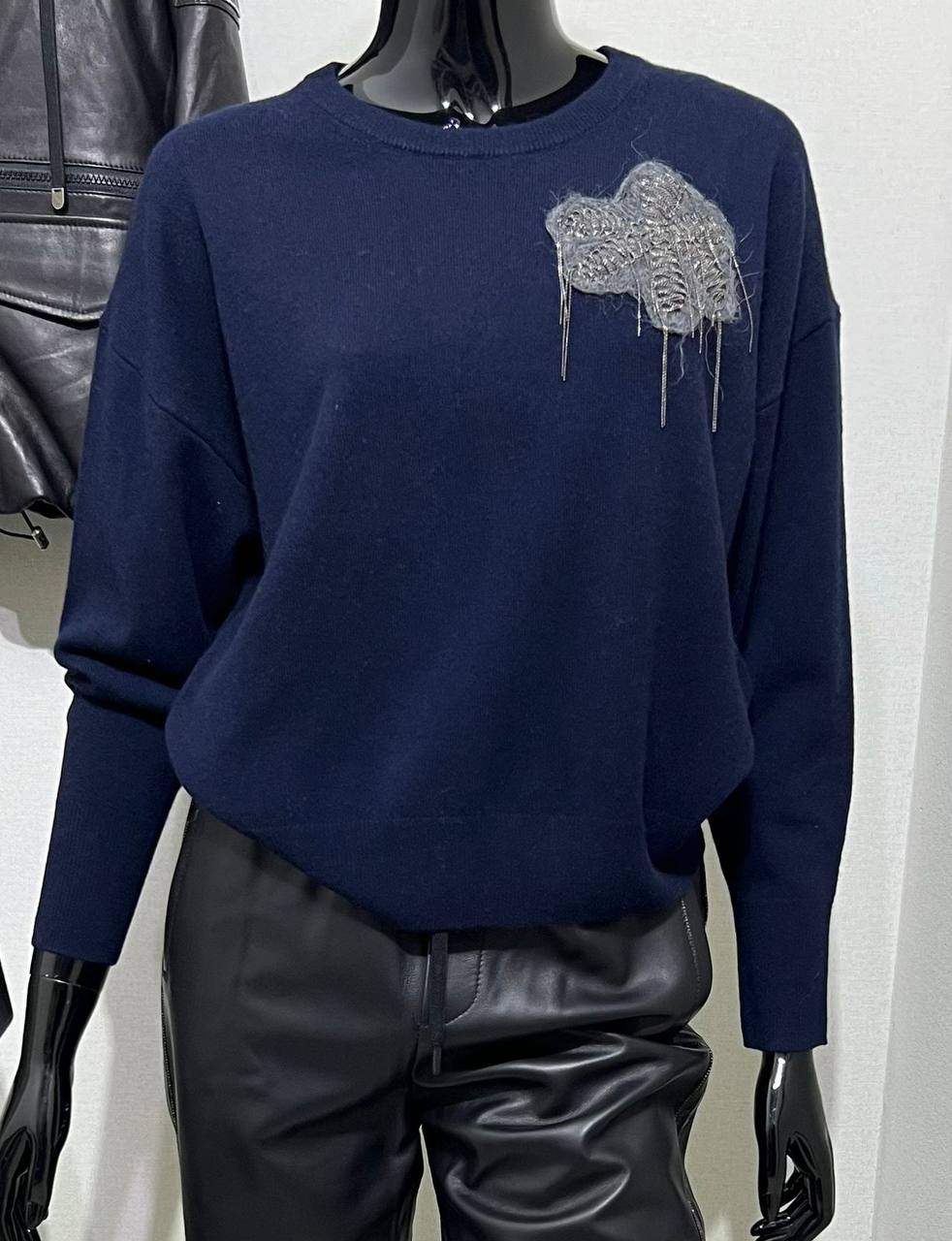 Кофта Brunello Cucinelli LUX-110253 - это стильный предмет гардероба, выполненный в классическом стиле. Она представляет собой кофту темно-синего цвета с круглым вырезом. Кофта украшена декоративной аппликацией на груди.