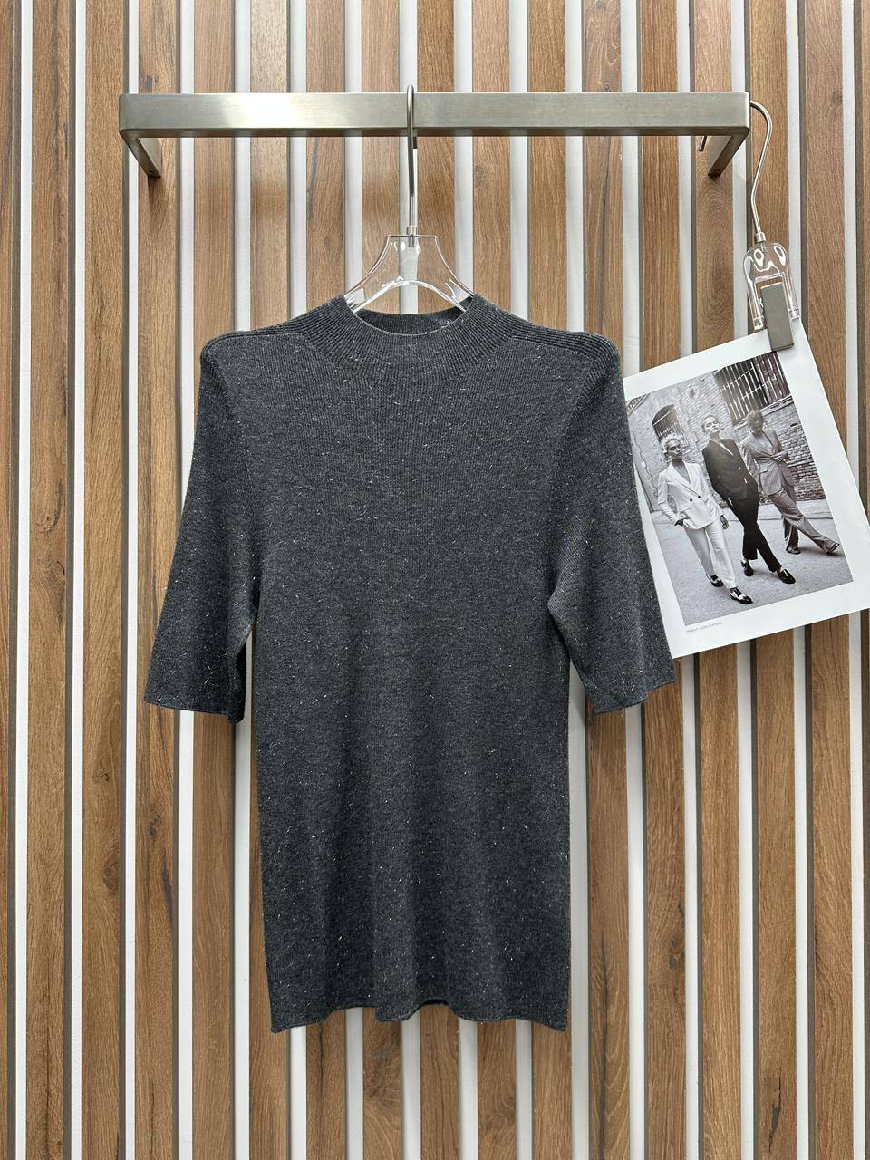 Кофта Brunello Cucinelli LUX-111483 представляет собой стильный предмет гардероба в сером цвете. Она имеет классический силуэт с короткими рукавами и высоким воротником. Эта кофта идеально подойдет для создания элегантного и современного образа.