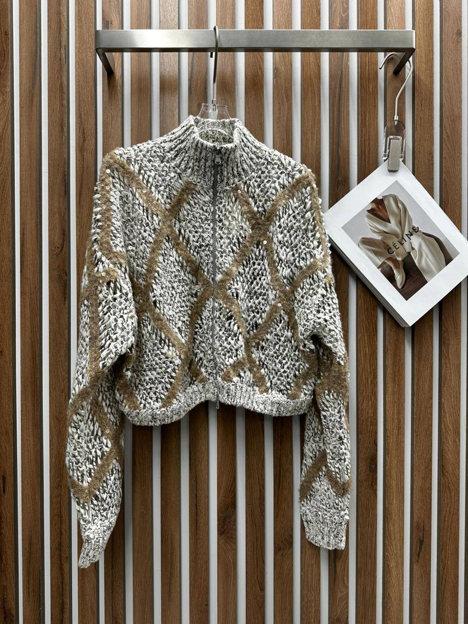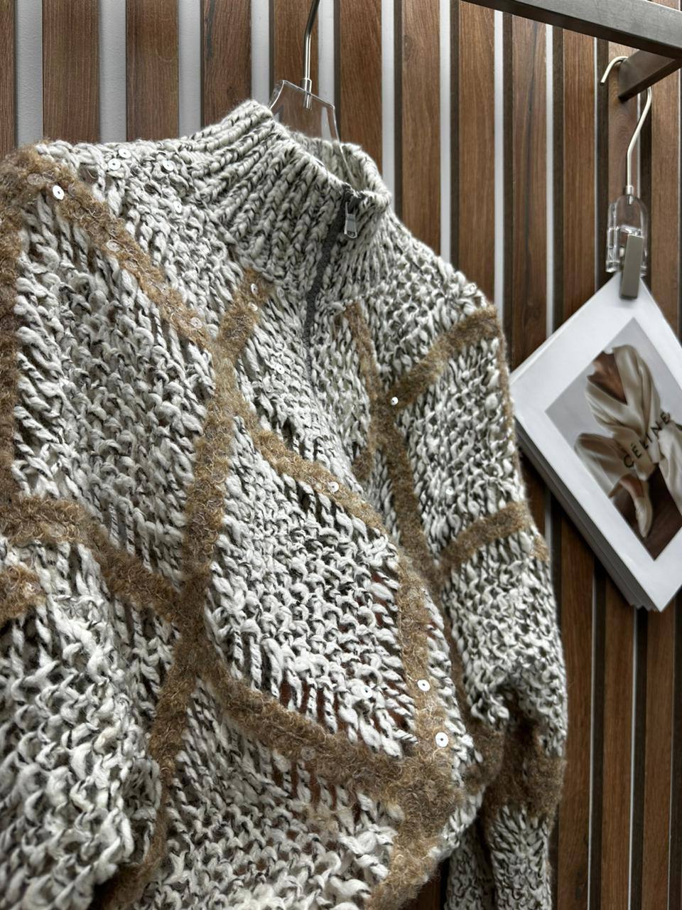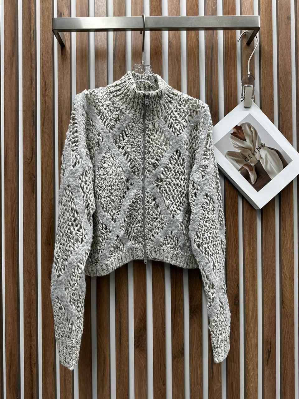 Кофта Brunello Cucinelli LUX-113228 – это стильная укороченная кофта с зип-молнией и воротником-стойкой. Кофта выполнена в серо-бежевых тонах с выразительной текстурой. Подходит для создания элегантных и современных образов.
