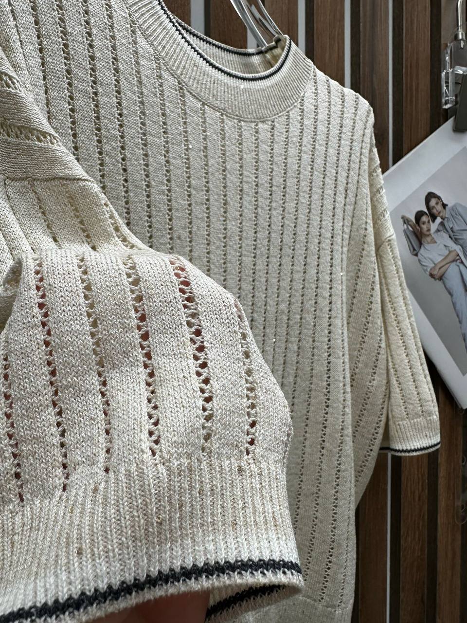 Кофта Brunello Cucinelli LUX-116760 – это стильная трикотажная кофта кремового цвета с короткими рукавами. Она выполнена в свободном стиле, что делает ее идеальным выбором для повседневного гардероба. Кофта выглядит элегантно и комфортно, сочетая в себе классический дизайн и современные тенденции.