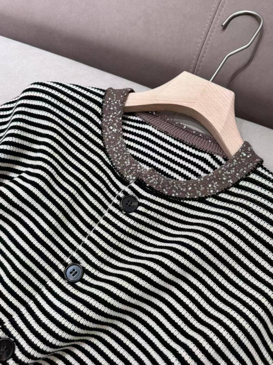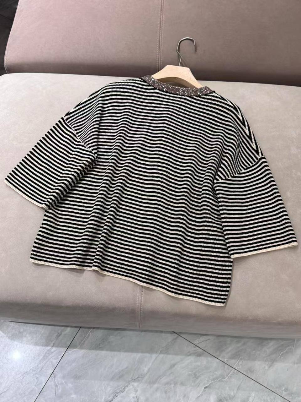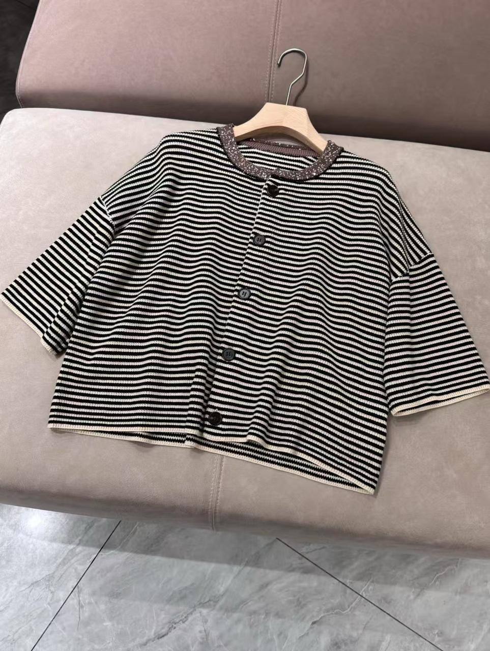 Кофта Brunello Cucinelli LUX-117379 - это элегантная кофта в полоску с короткими рукавами и круглым вырезом, которая идеально подходит для создания стильных образов. Кофта выполнена в приглушенных тонах, что делает ее универсальной для различных сочетаний. Предназначена для повседневной носки, добавляя нотку изысканности.