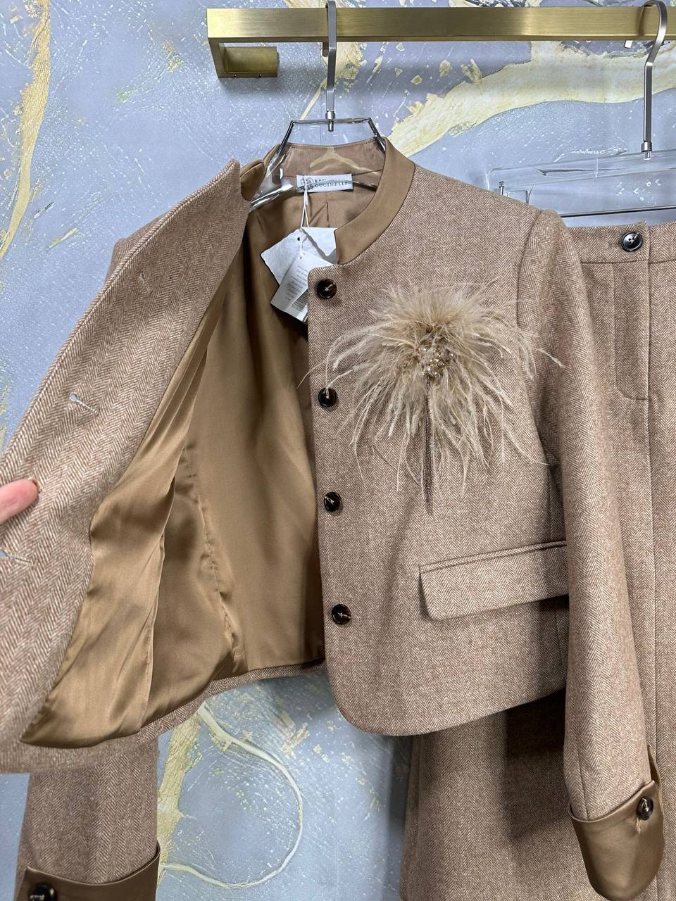 Костюм Brunello Cucinelli LUX-111270 - это изысканный комплект, сочетающий в себе элегантность и современный стиль. Костюм выполнен в теплых нейтральных тонах с добавлением текстурных деталей, создающих неповторимый образ. Этот костюм станет прекрасным выбором для создания стильного и запоминающегося образа.