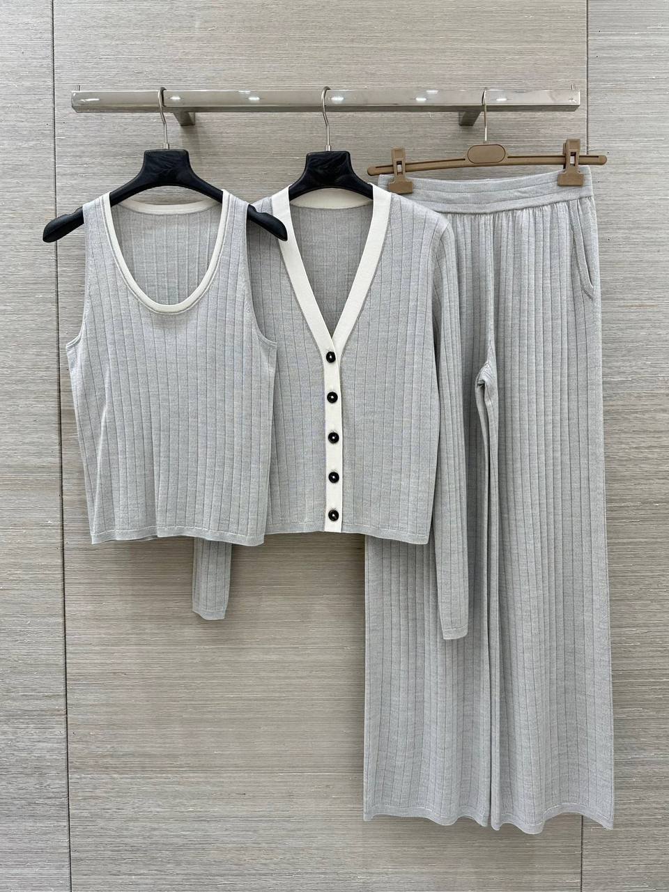 Костюм 3-ка Brunello Cucinelli – это стильный и комфортный комплект, выполненный в элегантном дизайне. Сочетание майки, кардигана и брюк делает его универсальным решением для создания различных образов.