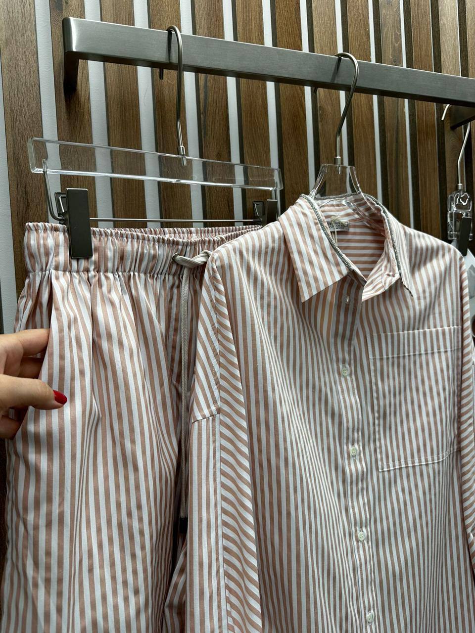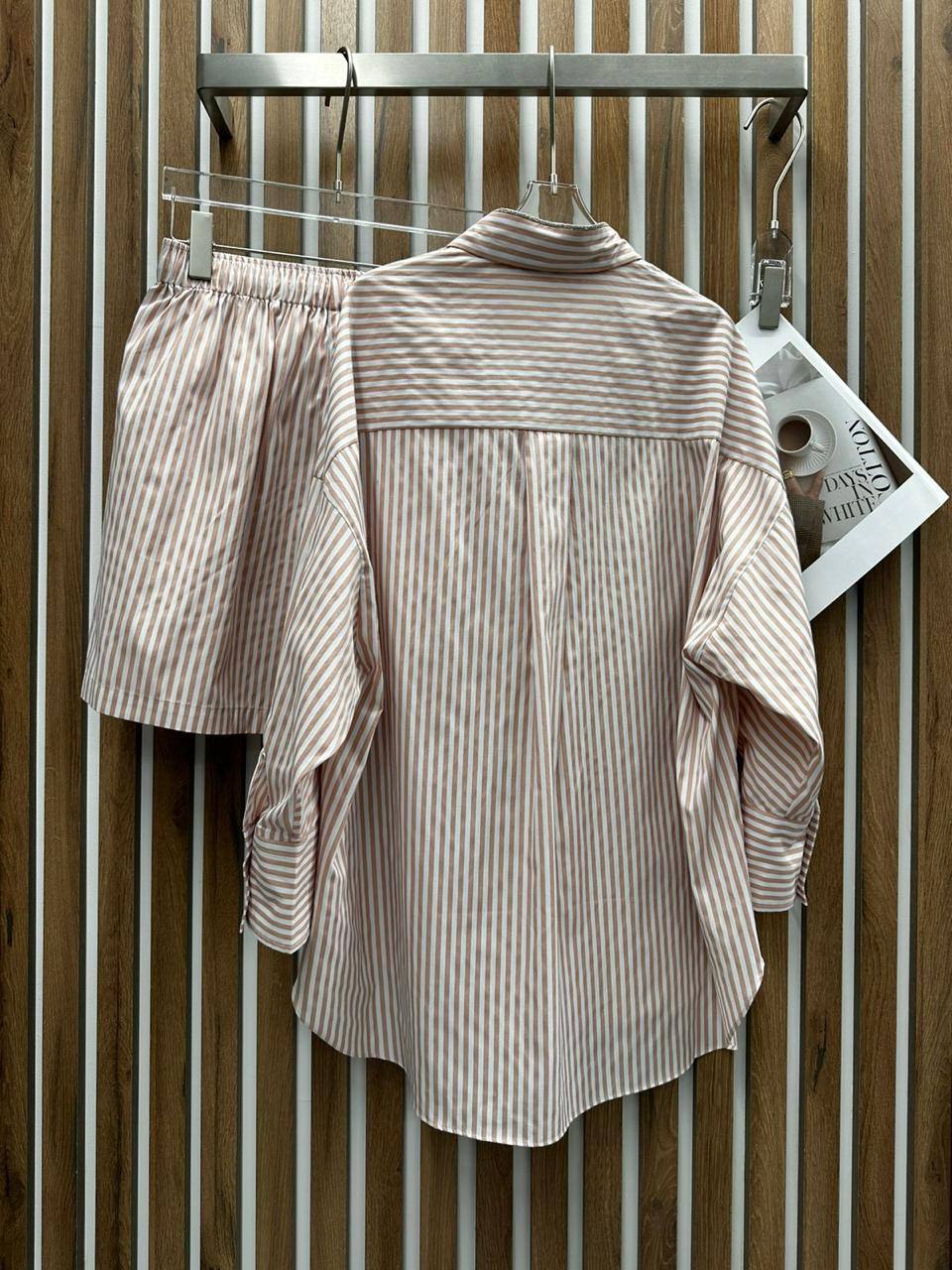 Костюм Brunello Cucinelli LUX-106985 представляет собой стильный и комфортный ансамбль, выполненный в расслабленном стиле. Комплект состоит из рубашки и шорт в полосатом исполнении, что добавляет образу свежести и легкости. Идеальный выбор для создания летнего повседневного образа.
