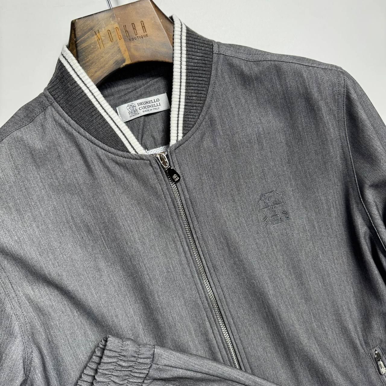 Костюм мужской Brunello Cucinelli LUX-115369 представляет собой стильный спортивный костюм в сером цвете. Костюм выполнен из мягкой ткани и состоит из куртки на молнии и брюк с эластичным поясом. Этот костюм подойдет для создания комфортных образов в повседневной жизни.