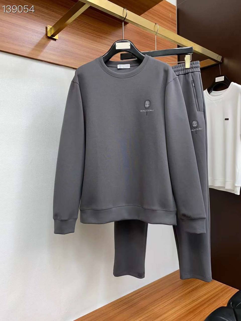 Костюм мужской Brunello Cucinelli LUX-115769 — это стильный спортивный костюм, выполненный в современном стиле. Костюм состоит из свитшота и брюк, выполненных в сером цвете. Текстура ткани гладкая, обеспечивающая комфорт и элегантный вид.