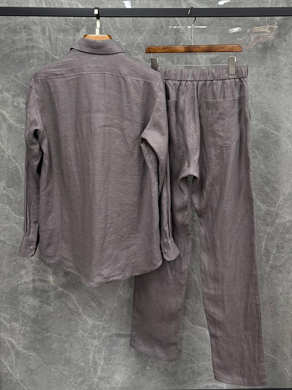 Мужской костюм Brunello Cucinelli LUX-120330 – это стильный и комфортный комплект в непринужденном стиле, идеально подходящий для создания элегантного повседневного образа. Сочетает в себе рубашку с длинными рукавами и брюки на кулиске, выполненные в едином цветовом решении.