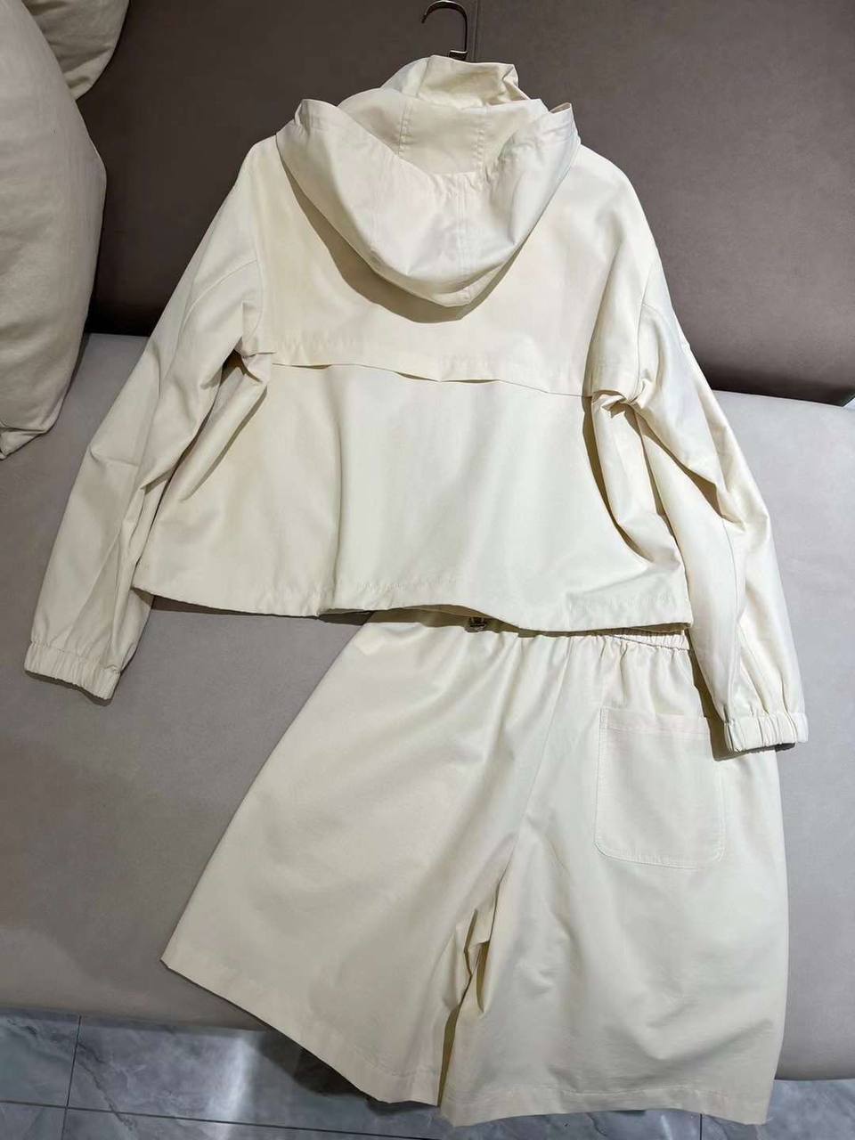 Костюм спортивный Brunello Cucinelli LUX-87908 — это стильный и комфортный ансамбль в спортивном стиле. Комплект состоит из куртки с капюшоном и шорт, выполненных в кремовом оттенке. Идеально подойдет для повседневной носки и активного отдыха.
