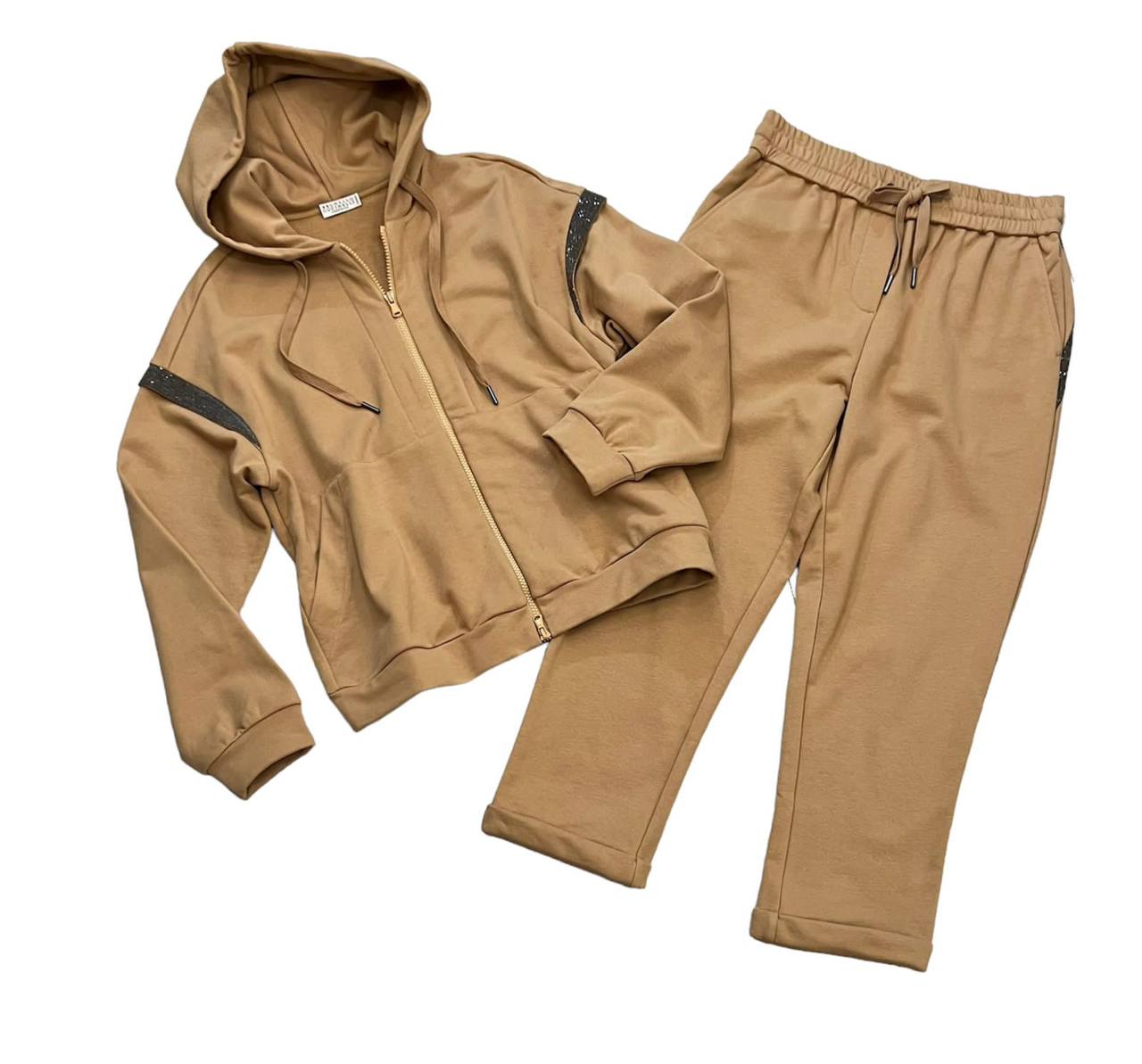 Костюм спортивный Brunello Cucinelli LUX-83738 представляет собой стильный и комфортный ансамбль, выполненный в повседневном стиле. Комплект включает в себя худи с капюшоном на молнии и брюки. Костюм выполнен в теплом коричневом цвете, что делает его универсальным для различных образов.