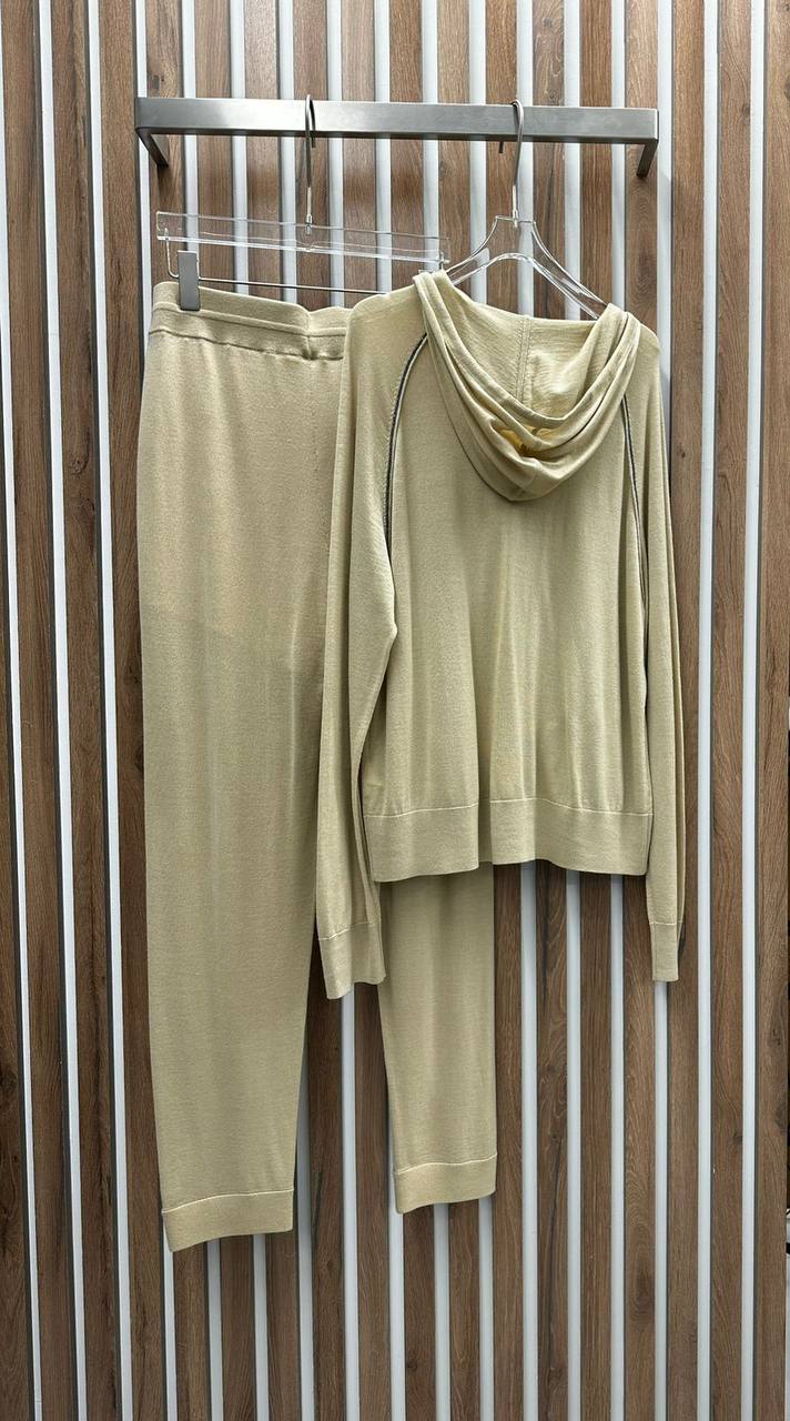 Костюм спортивный Brunello Cucinelli LUX-94301 - это элегантный спортивный костюм в современном стиле. Комплект состоит из худи на молнии с капюшоном и спортивных брюк. Бежевый цвет и минималистичный дизайн делают его универсальным для различных образов.