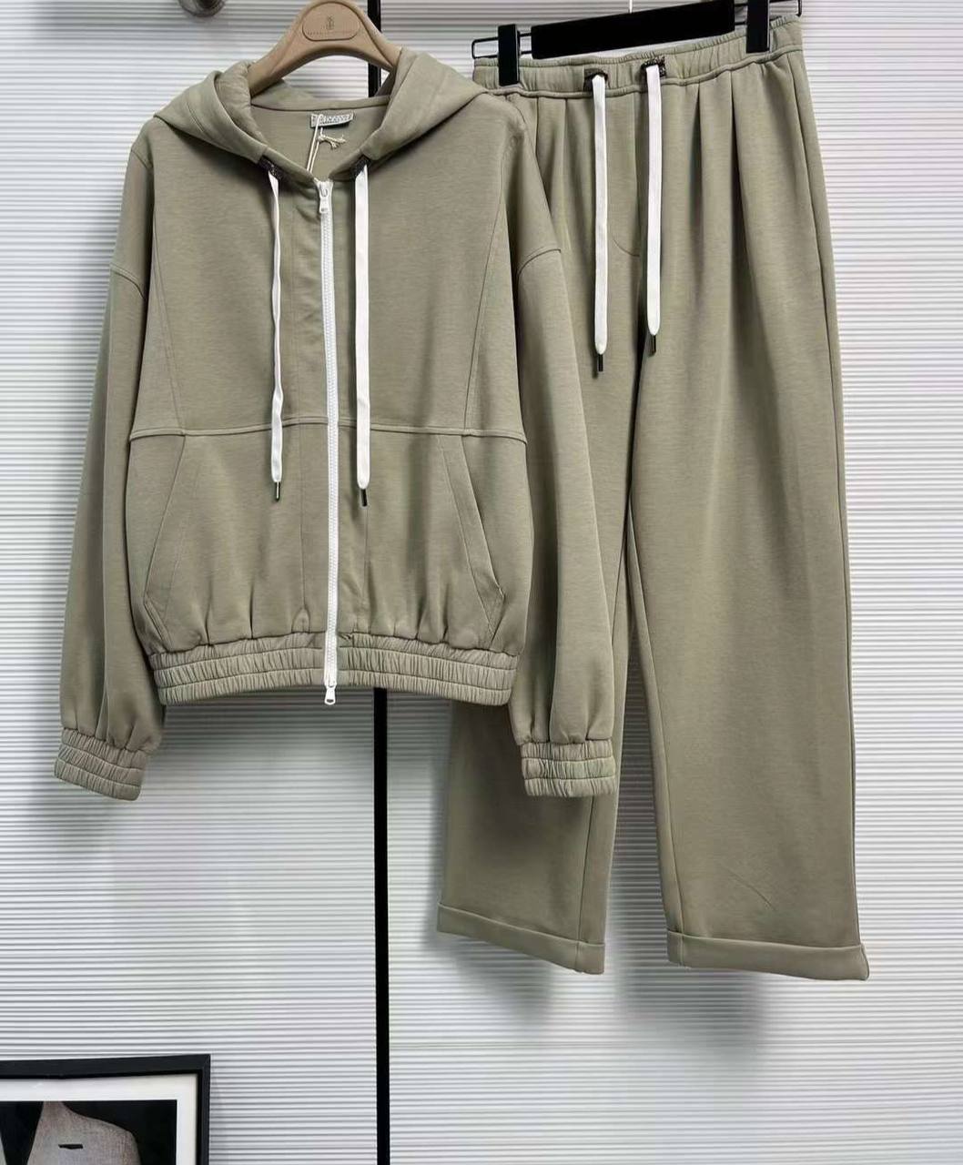 Костюм спортивный Brunello Cucinelli LUX-95513 представляет собой стильный и комфортный спортивный комплект в нейтральном оттенке, который идеально подойдет для создания расслабленных образов. Костюм состоит из худи с капюшоном на молнии и брюк свободного кроя. Этот комплект сочетает в себе элегантность и функциональность, что делает его отличным выбором для повседневной носки или активного отдыха.
