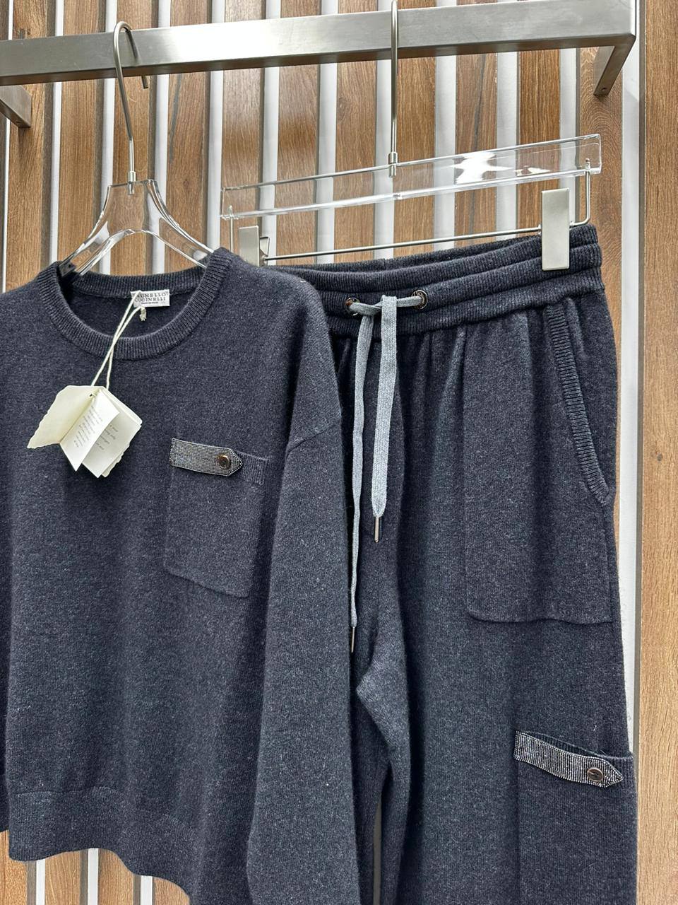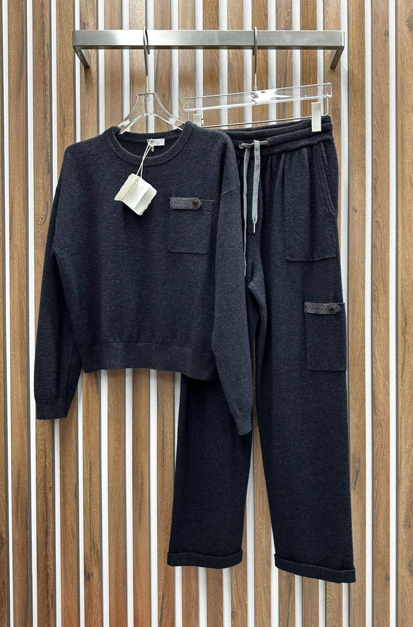 Костюм спортивный Brunello Cucinelli LUX-96105 представляет собой элегантный и удобный комплект для повседневной носки. Тёмно-серый костюм, состоящий из свитера и брюк, выполнен в современном стиле, который подчеркивает изысканность бренда. Костюм идеально подходит для создания стильного образа в прохладную погоду.