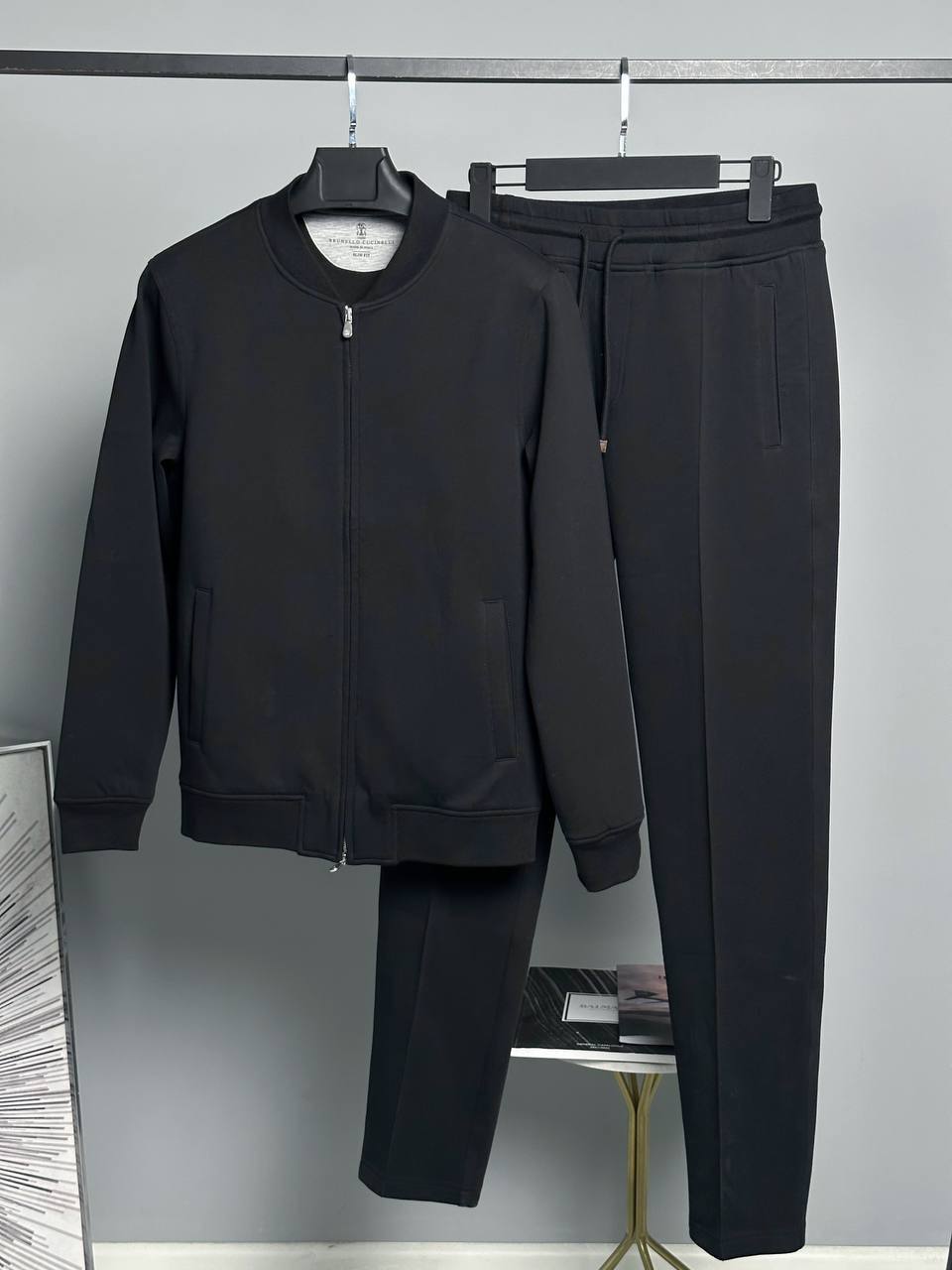 Костюм спортивный Brunello Cucinelli LUX-99645 — это воплощение элегантной спортивной одежды. Черный костюм, состоящий из куртки-бомбера и брюк, выглядит стильно и современно. Его минималистичный дизайн и универсальный цвет делают его идеальным выбором для различных образов.