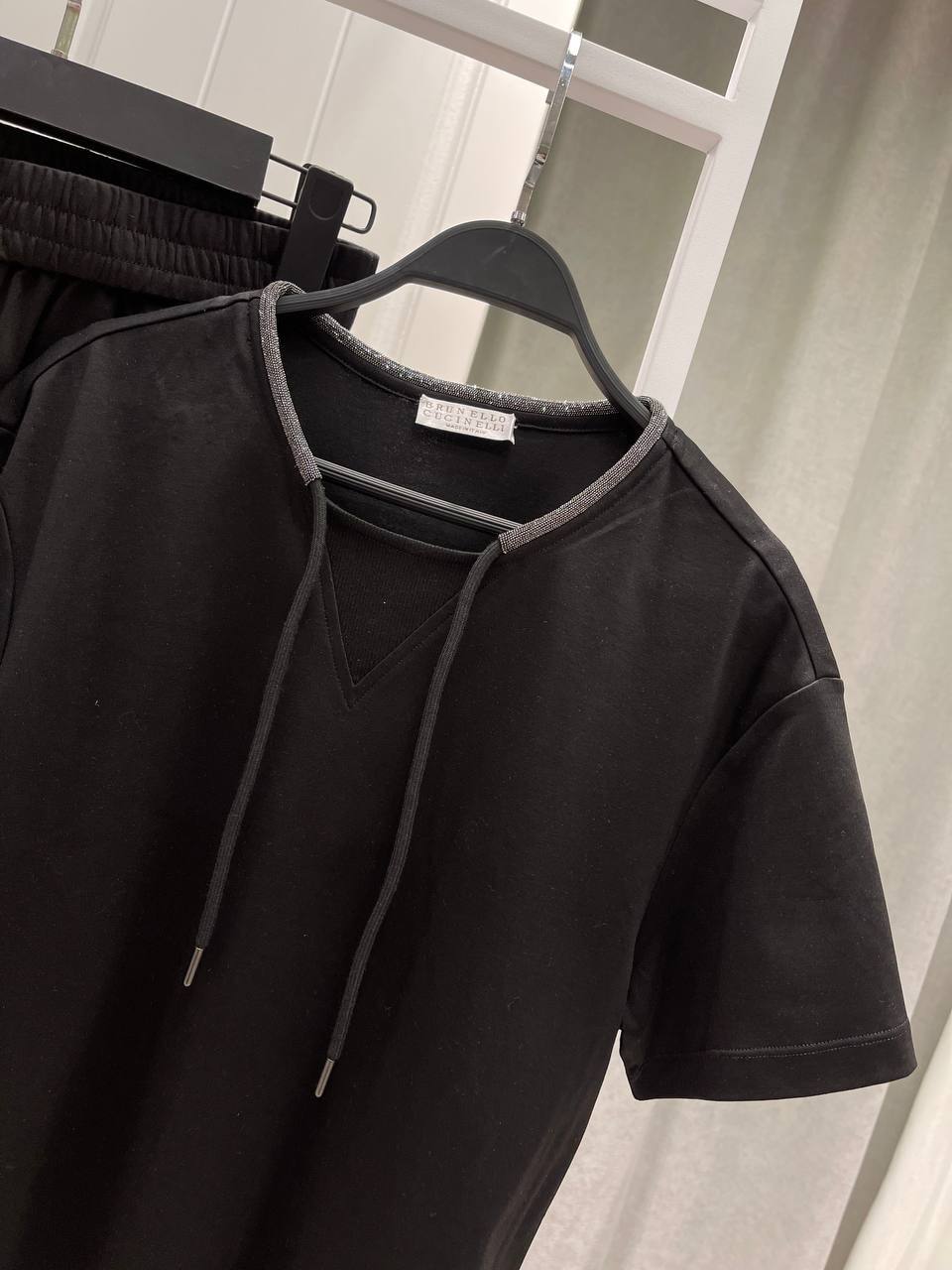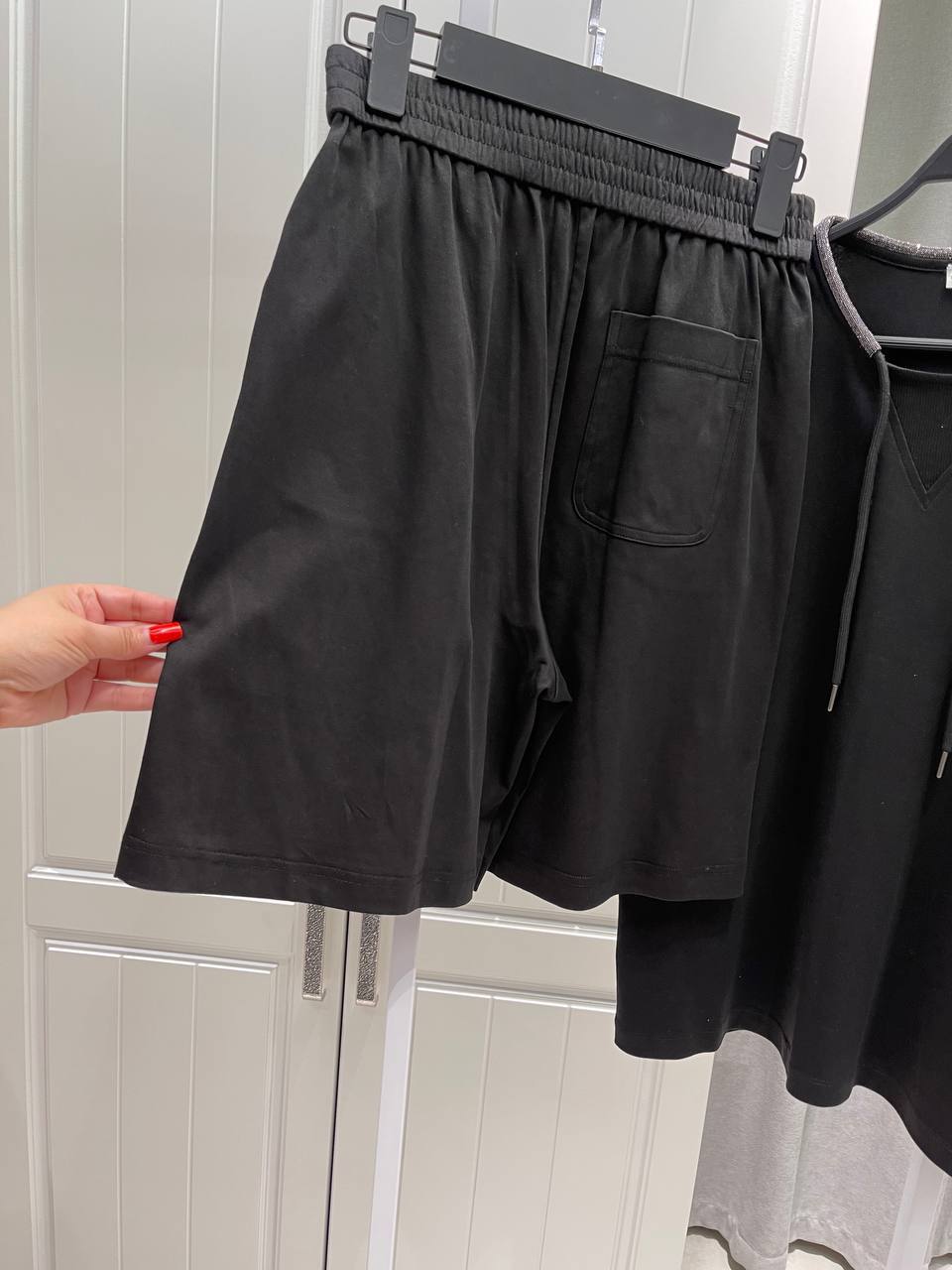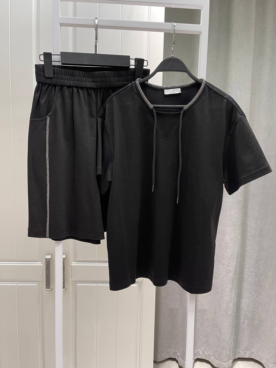 Костюм спортивный Brunello Cucinelli LUX-118684 — это стильный спортивный костюм, представленный в черном цвете. Комплект состоит из футболки и шорт, которые выполнены в лаконичном дизайне. Текстура ткани матовая, что придает изделию элегантный вид. Этот костюм подойдет для повседневной носки, активного отдыха или создания расслабленных образов.