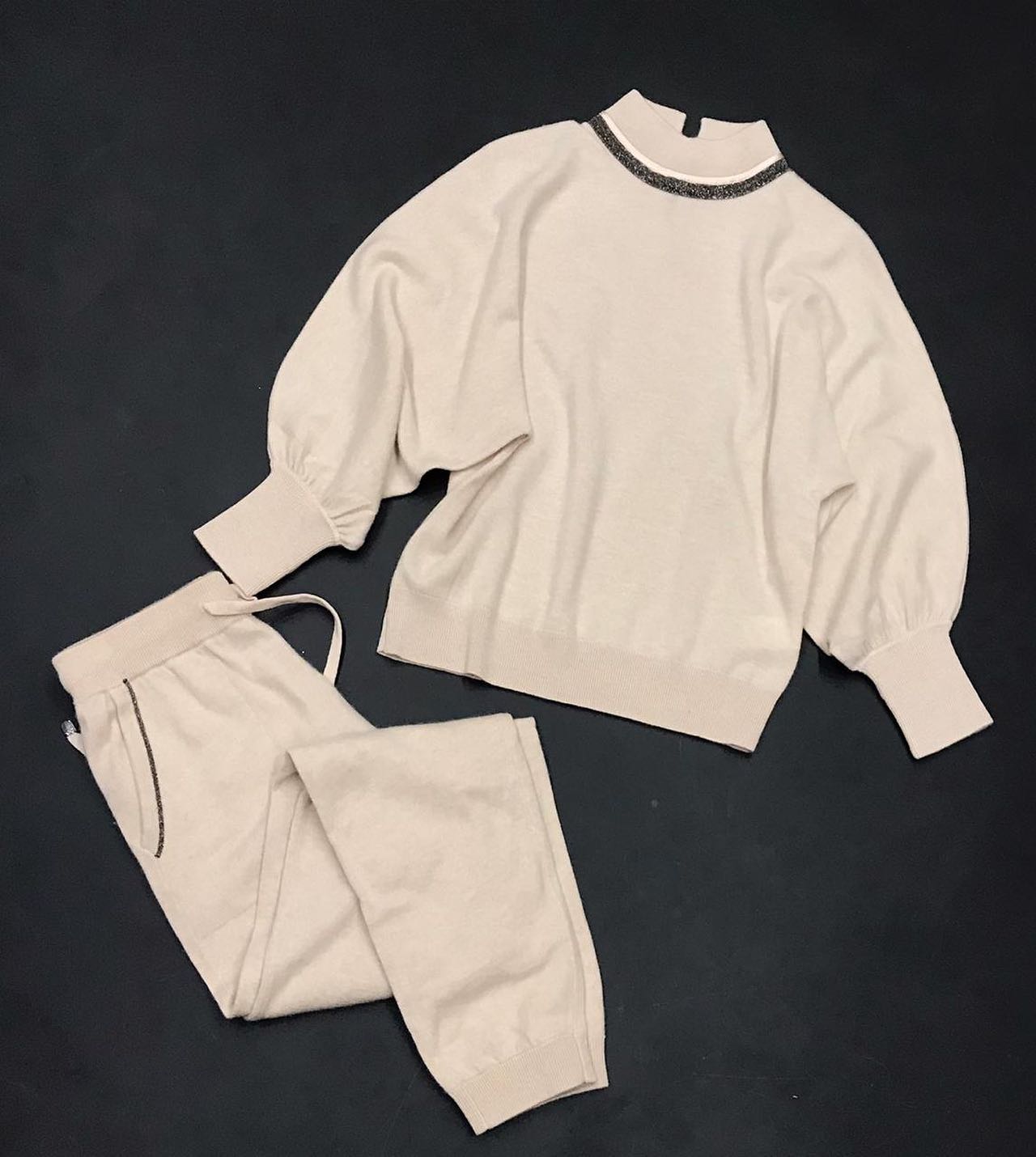 Элегантный спортивный костюм Brunello Cucinelli LUX-41172 представляет собой сочетание утонченного стиля и исключительного комфорта. Комплект выполнен в светлом, нейтральном оттенке, что делает его универсальным дополнением к вашему гардеробу. Детализированный дизайн, включая изысканное украшение на воротнике свитшота, подчеркивает премиальное происхождение бренда. Этот костюм идеально подходит для создания расслабленных, но в то же время изысканных образов.