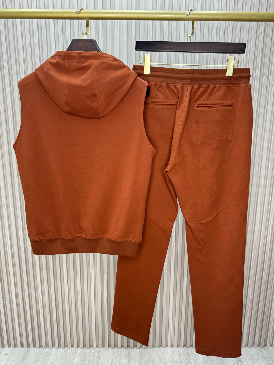 Спортивный костюм Brunello Cucinelli – стильное и комфортное решение для активного образа жизни. Комплект состоит из жилета с капюшоном на молнии и спортивных брюк.